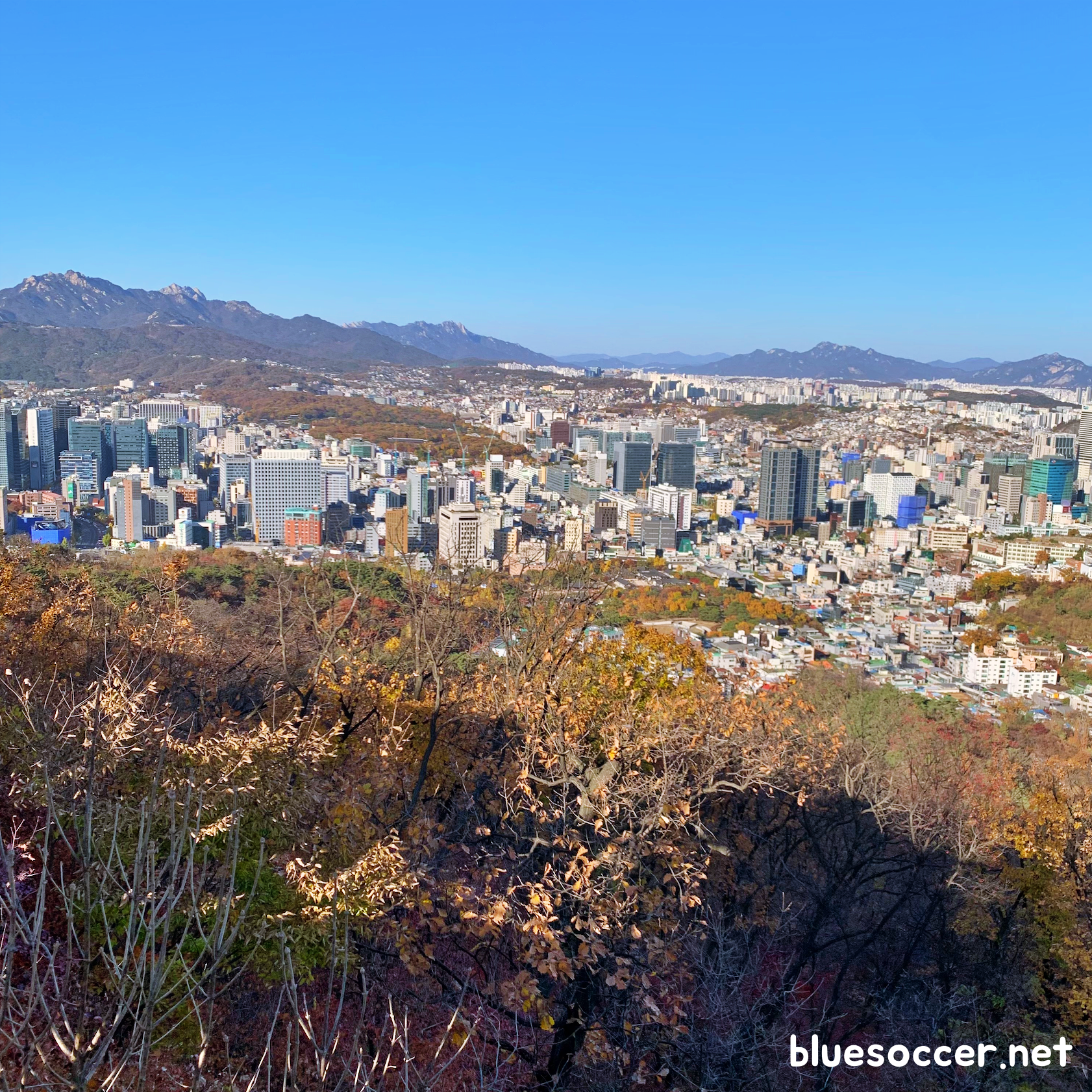 N서울타워 앞에서는 서울 도심의 모습을 생생하게 볼 수 있었습니다. 이날 날씨가 맑아서 푸른 하늘이 더욱 근사하게 느껴졌습니다. 제가 예전에 N서울타워에 왔을 때는 버스로 이동했던 경우가 적었던 것으로 기억하는데 이번에 버스를 타면서 얼마나 편리한지 실감했습니다.