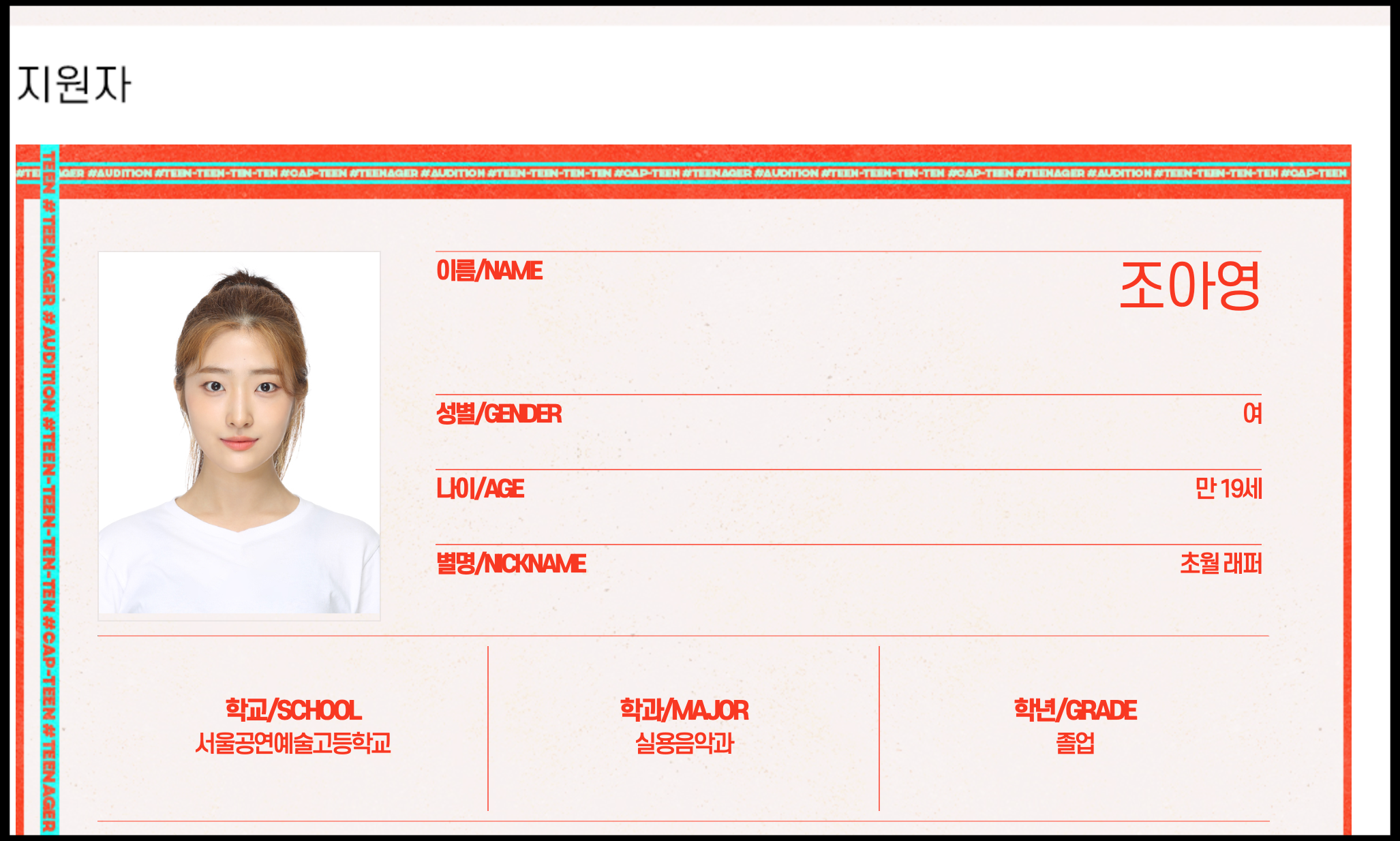 [사진 = 조아영 캡틴 출연 확정됐습니다. 2년 전 프로듀스48 출연했던 조아영 나이 만 19세이며 서울공연예술고등학교 실용음악과 졸업했습니다. (C) Mnet 캡틴 공식 홈페이지 프로필 사진]