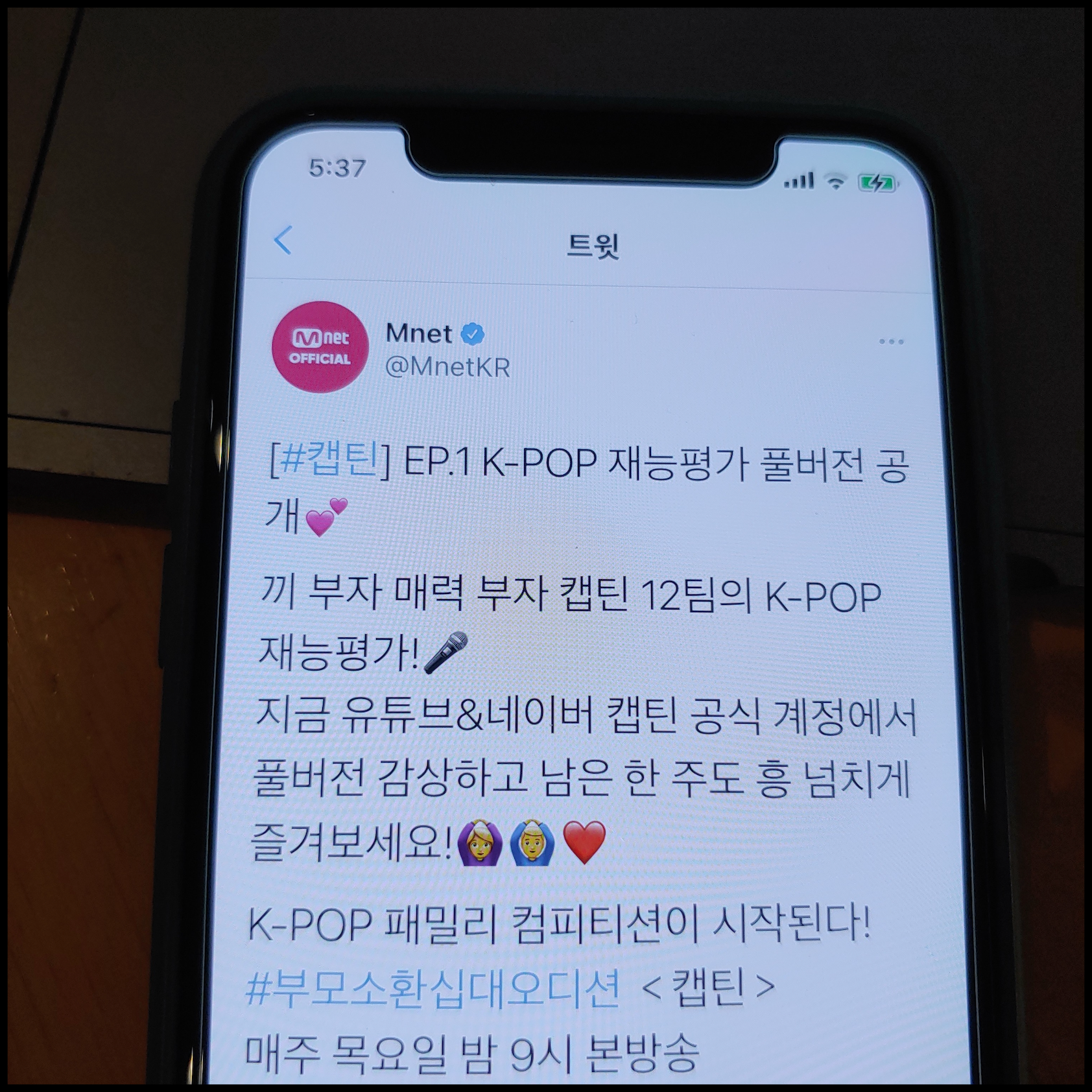 [사진 = Mnet 공식 트위터에서는 지난 11월 19일 방영된 캡틴 1회 K-POP 재능평가 풀버전 공개에 대한 게시물을 올렸습니다. 1회에 등장했던 캡틴 송수우, 주예진, 조아영, 강다민 등 참가자들의 경연 영상이 유튜브 및 네이버에서 공개되었음을 알렸습니다. 한편 1회 막판에 나왔던 캡틴 한별 합격 여부 및 심사위원들의 보다 구체적인 코멘트는 오는 2회 방영 예정이라는 점에서 누리꾼들의 궁금증이 커졌습니다. 이러한 편집을 통해서 한별 주목하는 시청자들이 꽤 있을 것으로 예상됩니다. 그 이유에 대해서는 알 수 없으나 과거 다른 방송사 오디션 프로그램을 통해 이름을 알렸던 것과 더불어 YG 연습생 출신이기 때문에 사람들의 관심이 쏠리기 쉽습니다. (C) Mnet 공식 트위터]