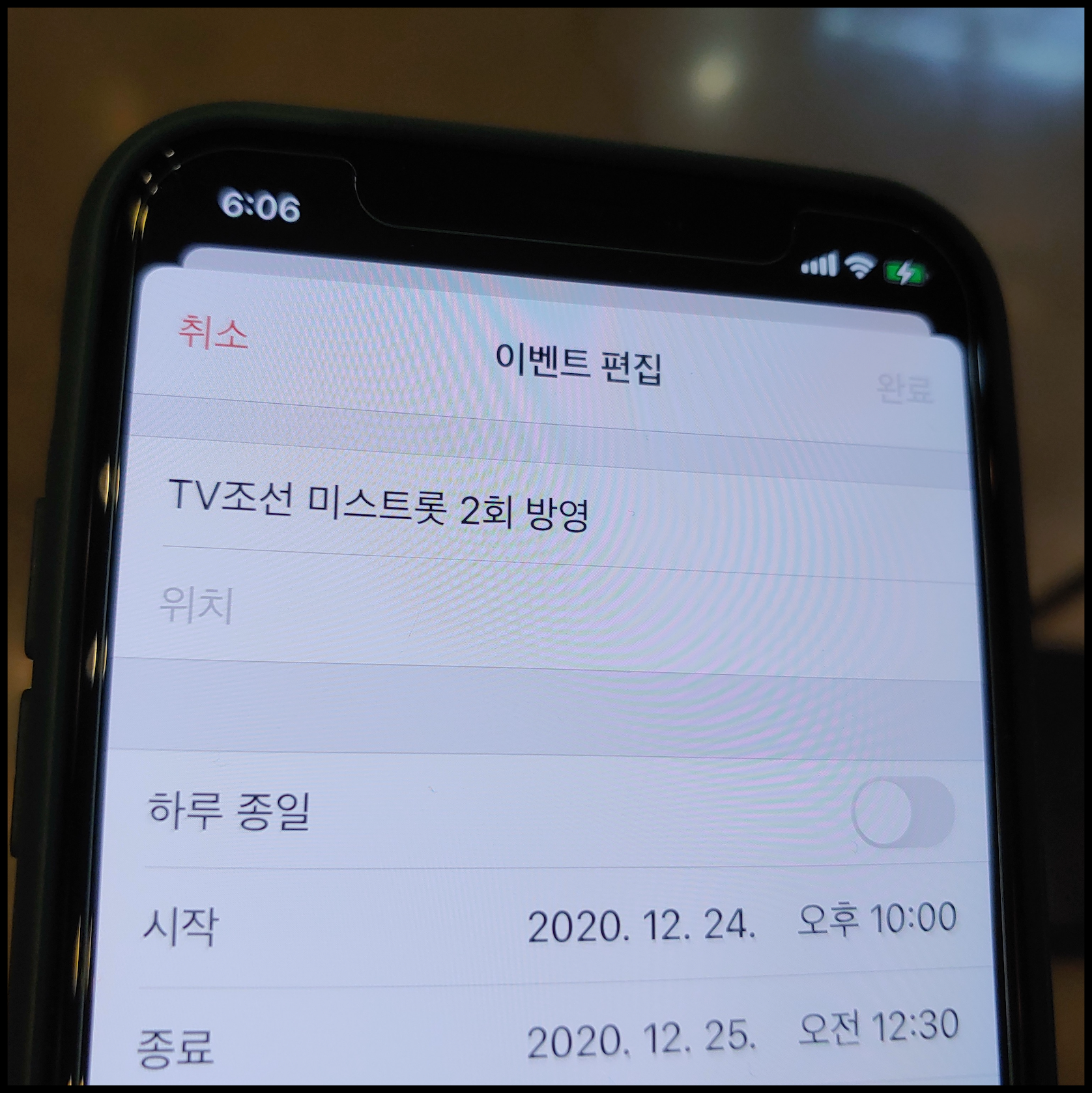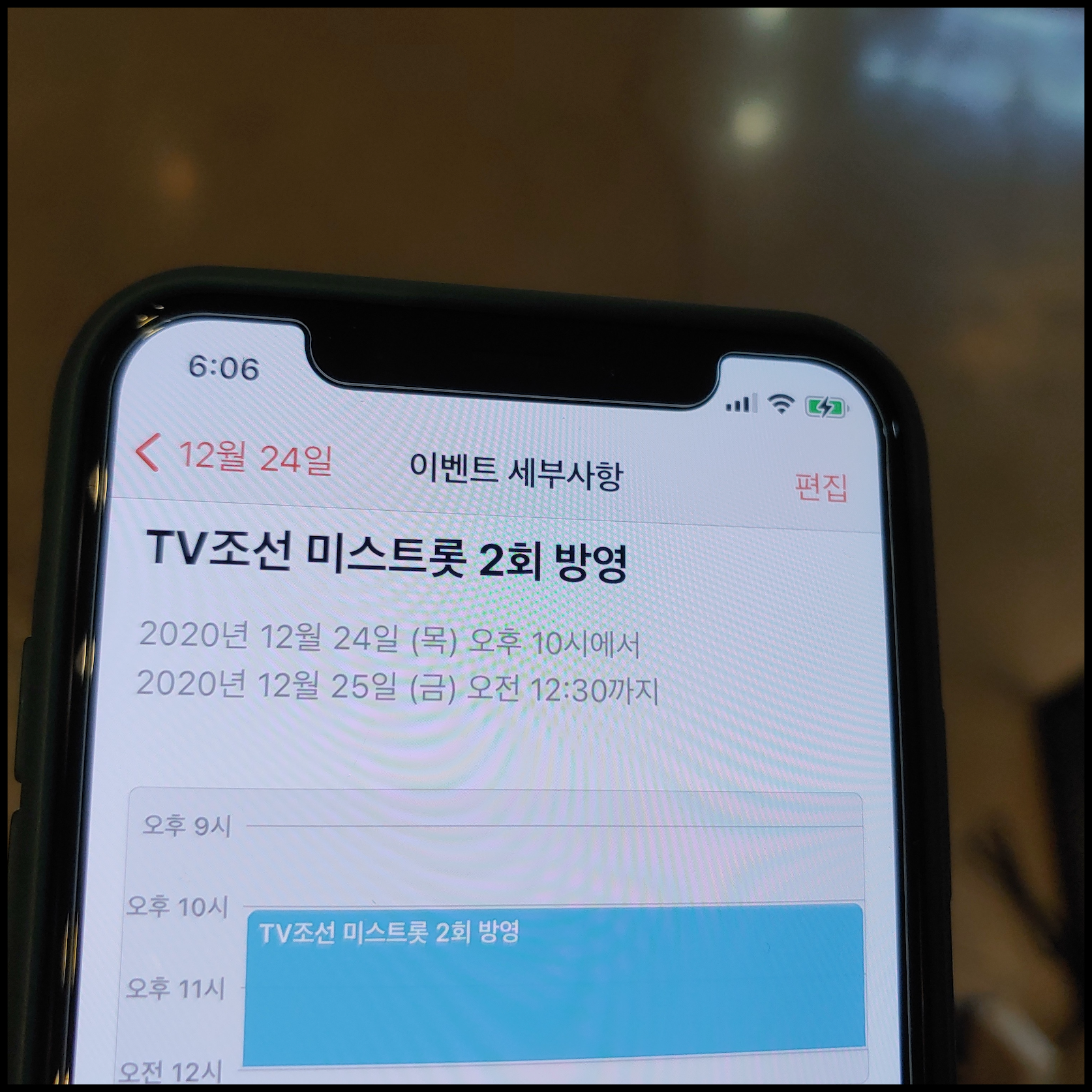 [사진 = 2020년 12월 24일 TV조선 미스트롯2 2회 방영 예정입니다. 사진은 저의 스마트폰 달력이며 2020년 12월 24일을 가리킵니다. (C) 나이스블루]