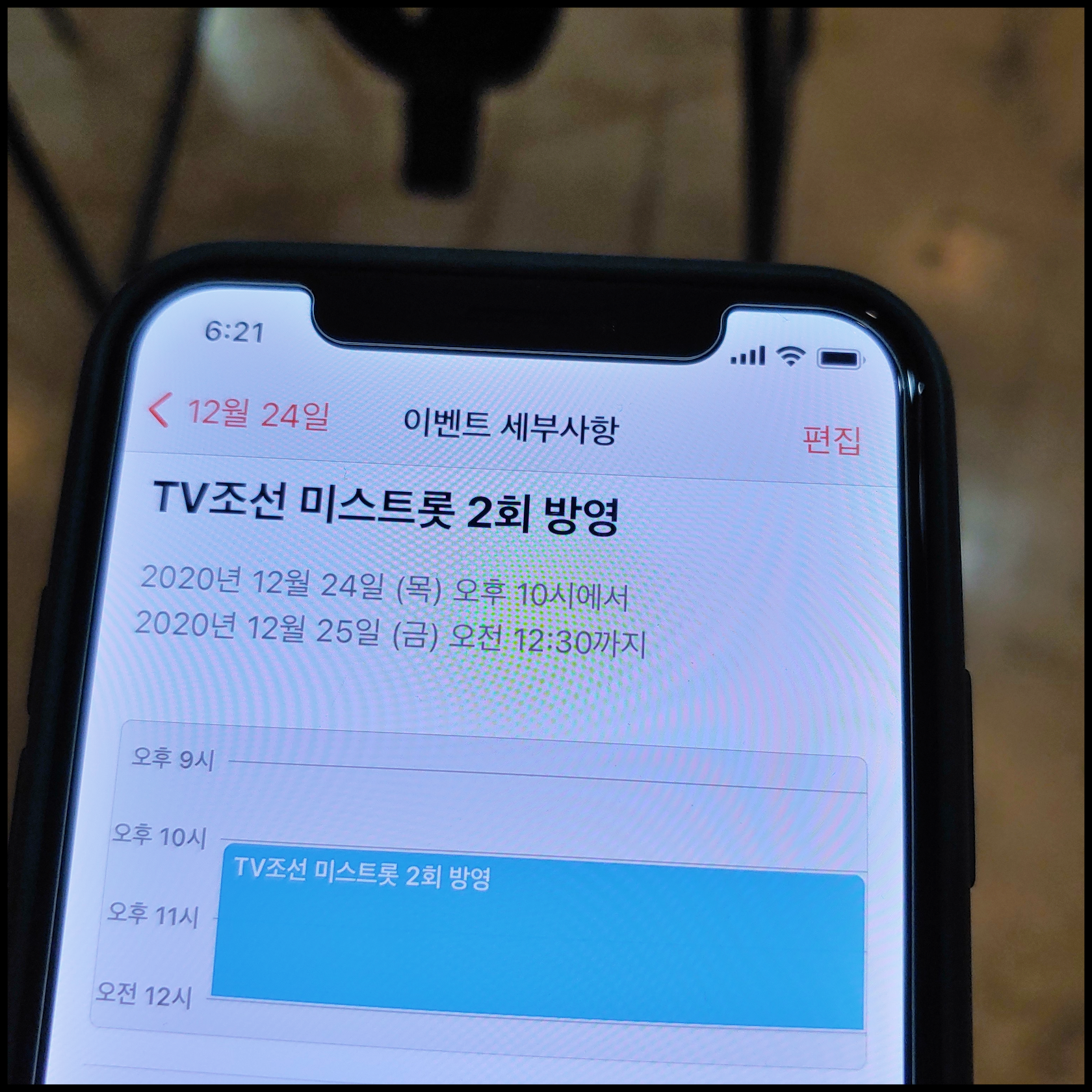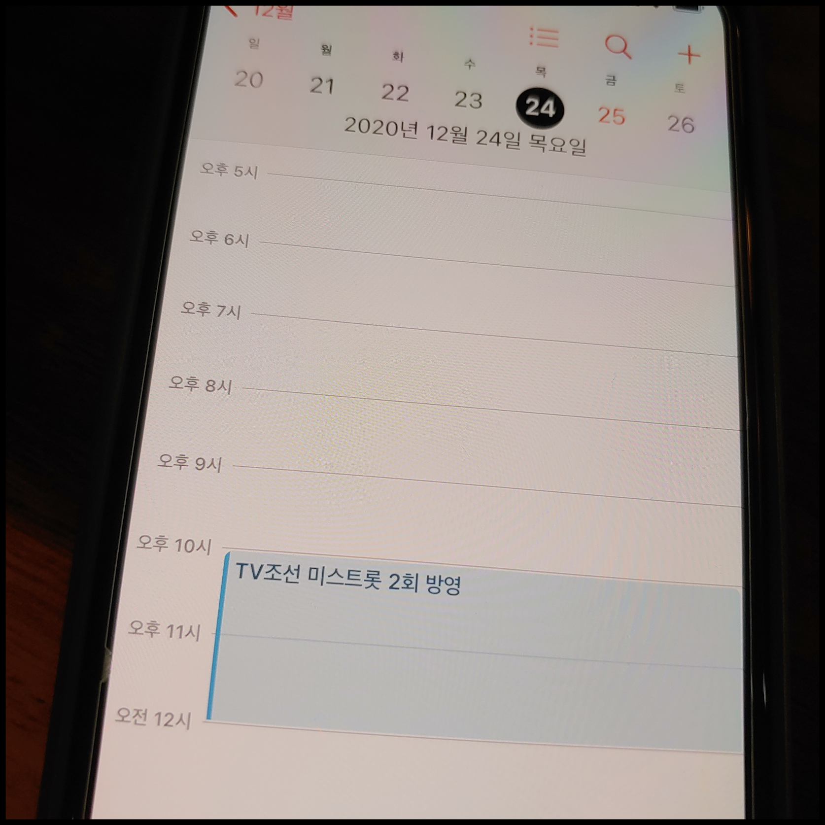 [사진 = 2020년 12월 24일 TV조선 미스트롯2 2회 방영됐습니다. 사진은 저의 스마트폰 달력이며 2020년 12월 24일을 가리킵니다. (C) 나이스블루]
