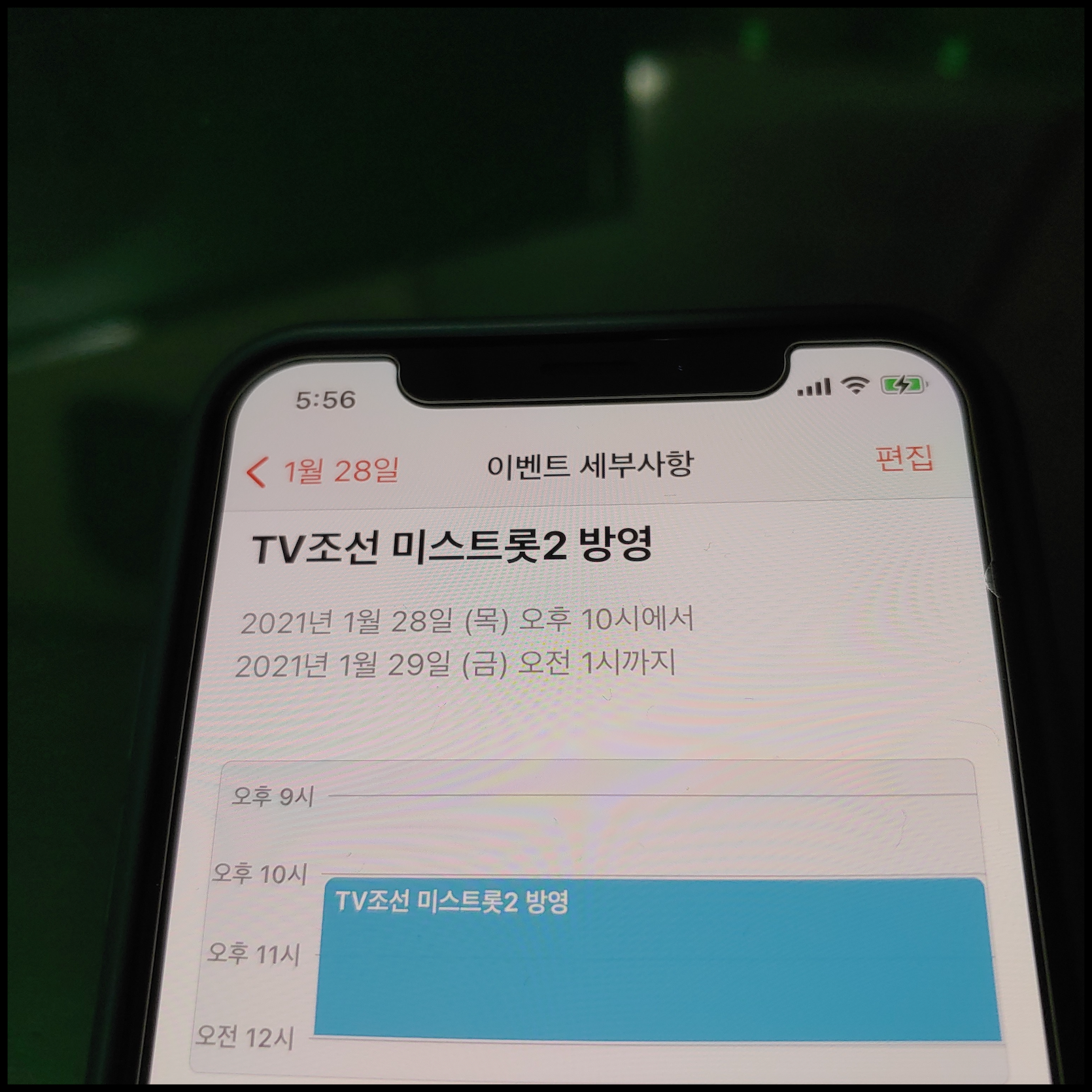 [사진 = 지난 2021년 1월 28일 TV조선 미스트롯2 방영됐습니다. 사진은 저의 스마트폰 달력이며 2021년 1월 28일을 가리킵니다. (C) 나이스블루]