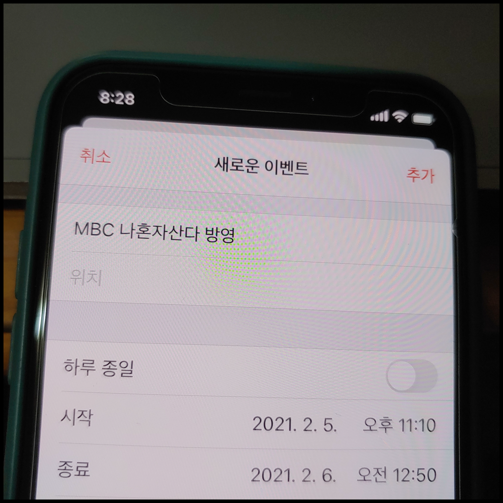 [사진 = 2021년 2월 5일 MBC 나혼자산다 안소희 출연 예정입니다. 사진은 저의 스마트폰 달력이며 2021년 2월 5일을 가리킵니다. (C) 나이스블루]