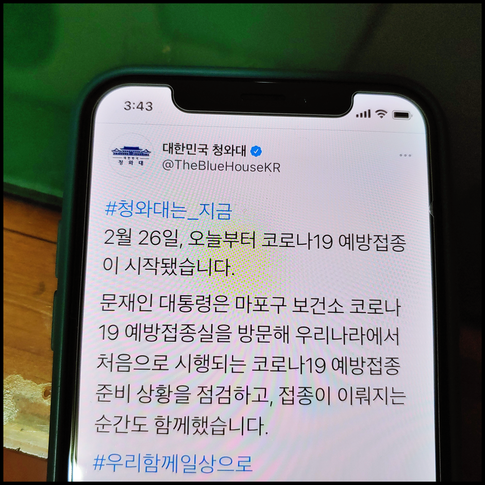 [사진 = 대한민국 청와대 공식 트위터에서는 2월 26일부터 코로나19 예방접종 시작됐다고 밝혔습니다. (C) 대한민국 청와대 공식 트위터]