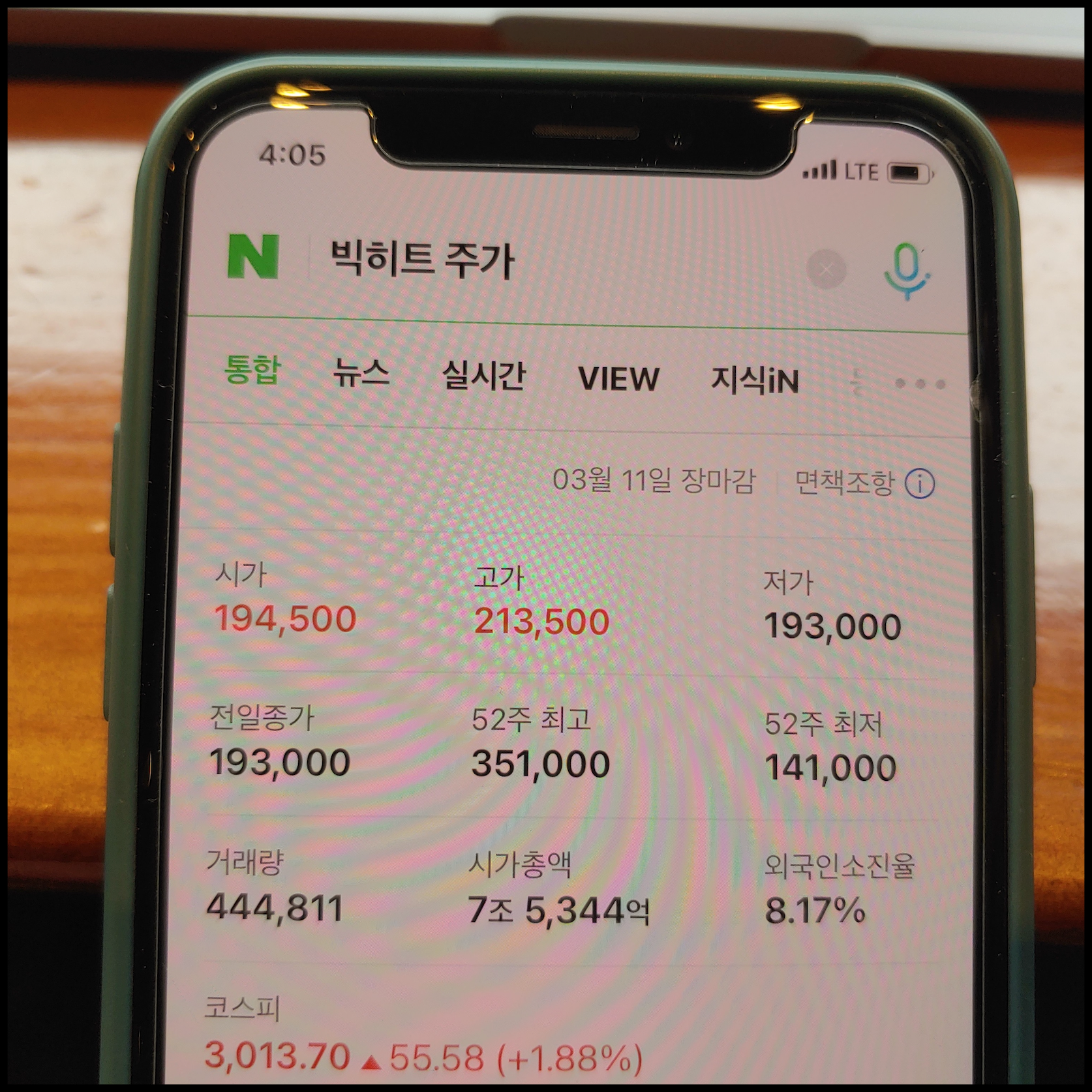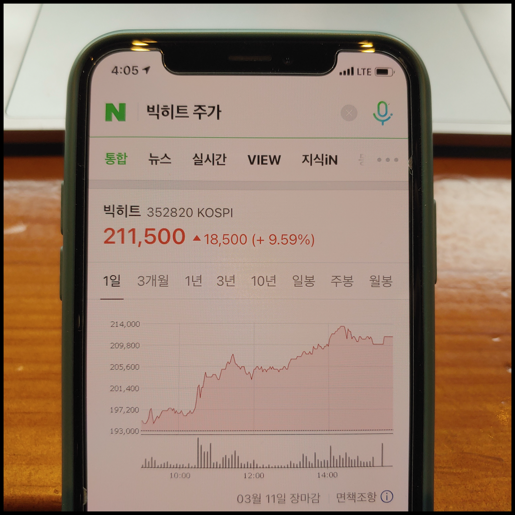 [사진 = 3월 11일 빅히트 주가 이렇습니다. 전날보다 상승 폭이 높습니다. 낮 시간대에 어느 언론을 통해 미야와키 사쿠라 관련 보도가 전해진 이후에는 상승이 더 뚜렷해졌습니다. 빅히트 주가 상승 이유는 방탄소년단 그래미 수상 여부 기대감이 반영됐다고 봐야하지 않을까 싶습니다. 그런데 낮 시간대에 상승 폭이 더 커진 것을 보면 이것이 미야와키 사쿠라와 관련된 것인지 여부는 알 수 없습니다. 사쿠라가 한국과 일본에서 인기 많기 때문에 이것이 호재일지 여부는 좀 더 지켜봐야 합니다. 참고로 이 포스팅은 특정 주식 종목 추천하는 의도로 작성하지 않았음을 밝힙니다. 추천과는 관련 없습니다. (C) 네이버 앱]