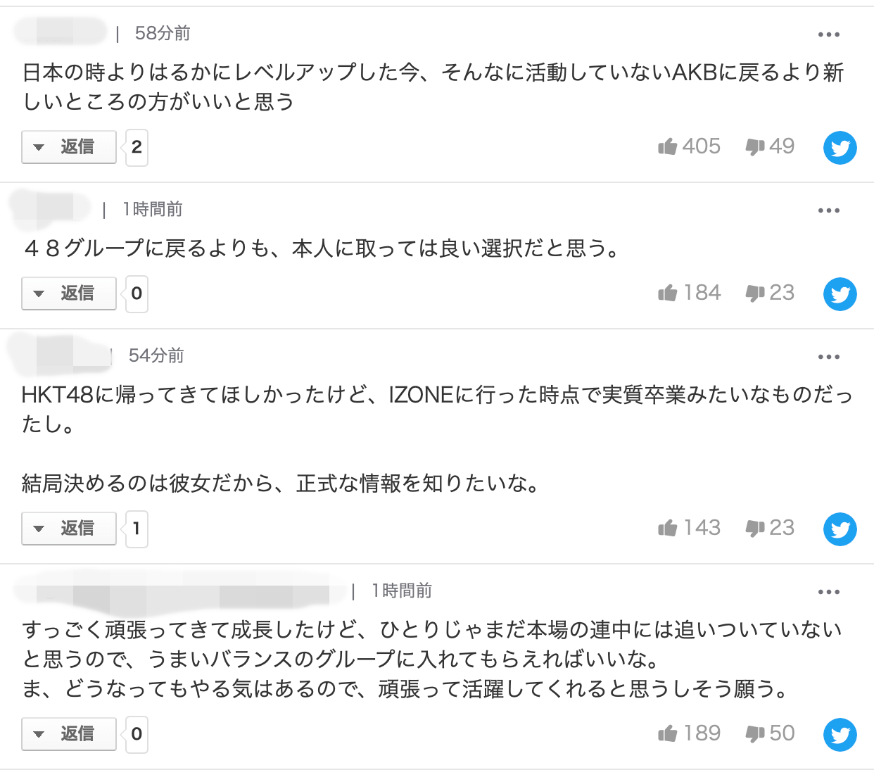 -HKT48로 돌아오길 바랬는데 아이즈원 간 시점에서 뭔가 실졸업 같은 거였고. 결국 결정하는건 그녀니까 정식 정보를 알고 싶어.