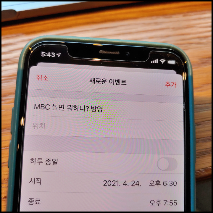 [사진 = 2021년 4월 24일 MBC 놀면뭐하니 방영 예정입니다. 사진은 저의 스마트폰 달력이며 2021년 4월 24일을 가리킵니다. (C) 나이스블루]