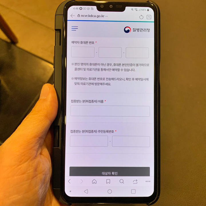 그런데 대리 예약은 접종받는 분의 이름과 주민등록번호도 입력해야 합니다. 60세 이상 백신접종 신청 같은 경우 자녀분들이 60세 이상 부모님을 대신해서 대리 예약하는 경우가 있을 듯 합니다. 만약 부모님의 스마트폰 사용이 원활하지 않다면 대리 예약이 유용할 듯합니다.