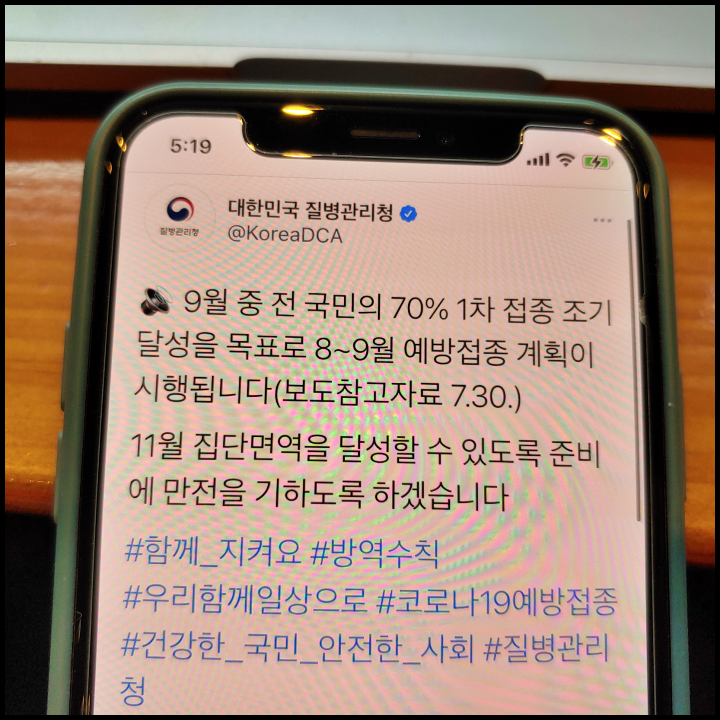 [사진 = 대한민국 질병관리청 공식 트위터에서는 오는 11월 집단면역을 목표로 하고 있다고 합니다. (C) 대한민국 질병관리청 공식 트위터]