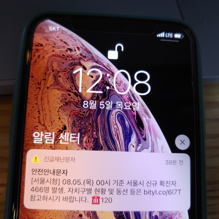 서울의 8월 5일 오전 0시 기준 신규 확진자는 466명이라고 합니다. 사진은 저의 스마트폰입니다.