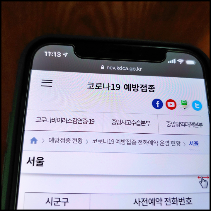 [사진 = 각 지역의 코로나19 예방접종 전화예약 번호는 여기서 확인할 수 있습니다. 홈페이지 상단에 있는 '예방접종 현황'에 속해있는 메뉴 중에 '코로나19 예방접종 전화예약 운영 현황'이라고 되어 있는 곳이 있습니다. 서울, 부산, 대구, 인천 등 여러 대도시와 경기도, 강원도 등의 지역 전화예약 번호가 나와 있습니다. 참고로 지역의 운영요일 및 운영시간 반드시 참고하셔서 전화하셔야 할 듯 합니다. (C) 코로나19 예방접종 공식 홈페이지(ncv.kdca.go.kr)]