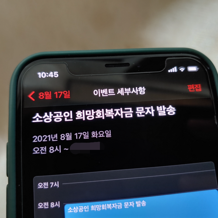 [사진 = 소상공인 희망회복자금 문자 같은 경우 8월 17일 오전 8시부터 발송된다고 보시면 됩니다. 사진은 저의 스마트폰 달력이며 2021년 8월 17일을 가리킵니다. (C) 나이스블루]
