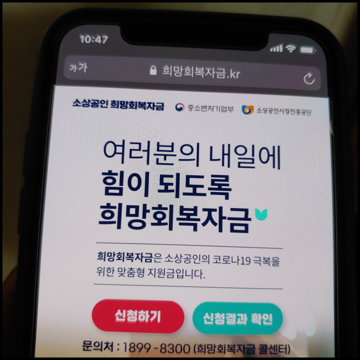 만약 문자를 받았다면 소상공인 희망회복자금 신청 관련 홈페이지에서 온라인으로 접수를 하셔야 합니다. (1) 대상 여부 조회 (2) 본인인증 (3) 추가정보 확인/입력 (4) 지급 과정을 거쳐 지원금 지급 예정되는 것이 소상공인 희망회복자금 신청 과정입니다. 이 과정에서 본인인증 때는 휴대폰 인증 또는 공동(공인)인증서 필요합니다. 법인이신 분은 법인공동(공인)인증서만 가능하다고 합니다.