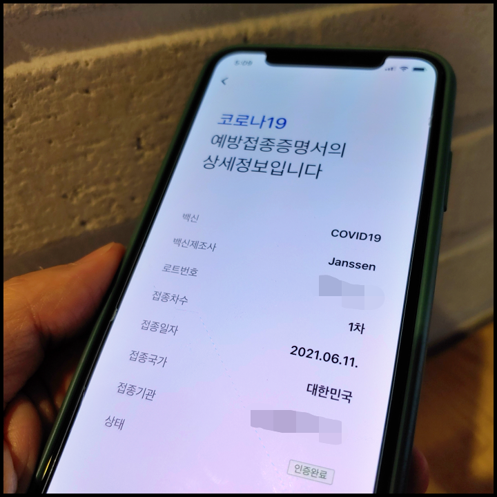 [사진 = 저는 지난 6월에 얀센 백신 접종 받았습니다. (C) 질병관리청 COOV 앱]