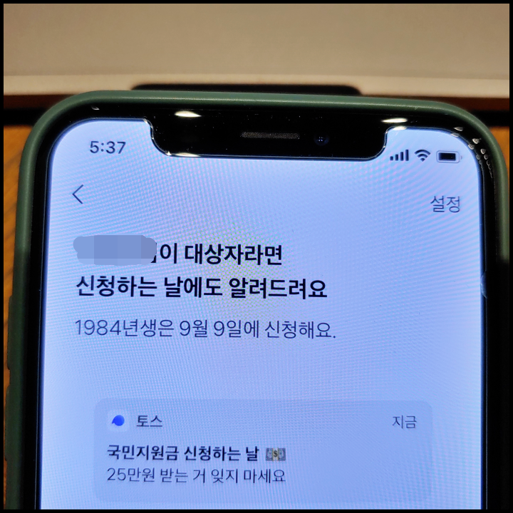 [사진 = 저는 이렇게 국민비서 알림 신청했습니다. 9월 5일 일요일은 코로나 상생 국민지원금 대상자 나오는 날이라고 안내됐습니다. 신청일은 출생연도에 따라 다릅니다. (C) 토스 앱]