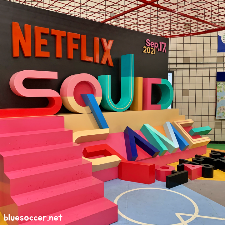 [사진 = 이태원역에 마련된 넷플릭스 오징어게임 체험존 모습 (C) 나이스블루]