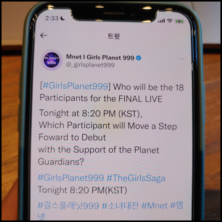 [사진 = 2021년 10월 22일 Mnet 걸스플래닛 999 최종회 방영 예정입니다. 평소보다 방영 시간이 많이 늘었습니다. 사진은 저의 스마트폰 달력이며 2021년 10월 22일을 가리킵니다. (C) 나이스블루]