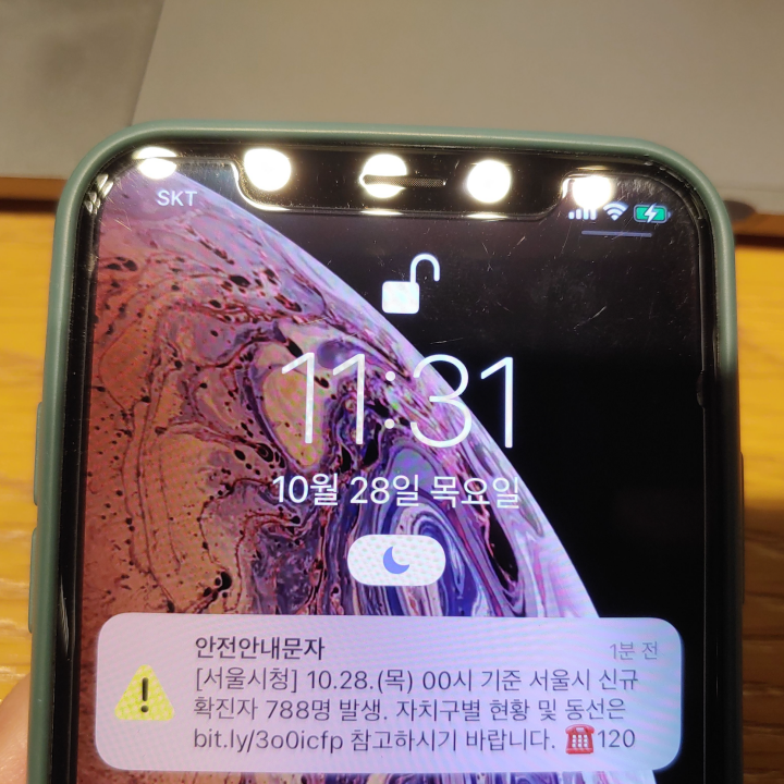 [사진 = 서울은 10월 28일 오전 0시 기준으로 하루 확진자 788명 발생했습니다. 여전히 확진자 많이 나오는 상황입니다. 사진은 저의 스마트폰입니다.]