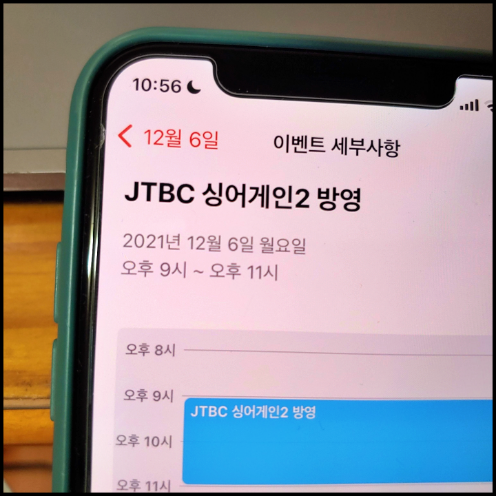 [사진 = 2021년 12월 6일 JTBC 싱어게인2 방영 예정입니다. 사진은 저의 스마트폰 달력이며 2021년 12월 6일을 가리킵니다. (C) 나이스블루]