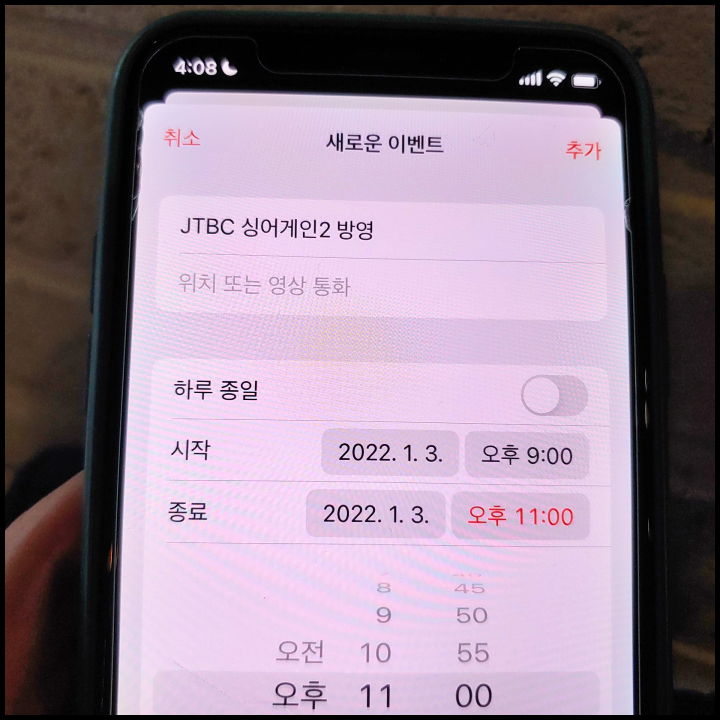 [사진 = 2022년 1월 3일 JTBC 싱어게인2 방영 예정입니다. 사진은 저의 스마트폰 달력이며 2022년 1월 3일을 가리킵니다. (C) 나이스블루]