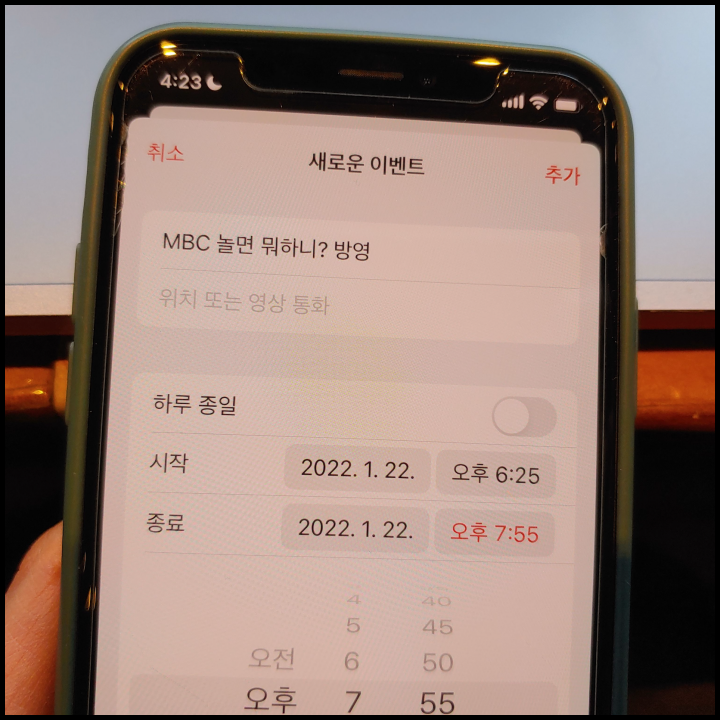 [사진 = 2022년 1월 22일 MBC 놀면 뭐하니 방영 예정입니다. 사진은 저의 스마트폰 달력이며 2022년 1월 22일을 가리킵니다. (C) 나이스블루]