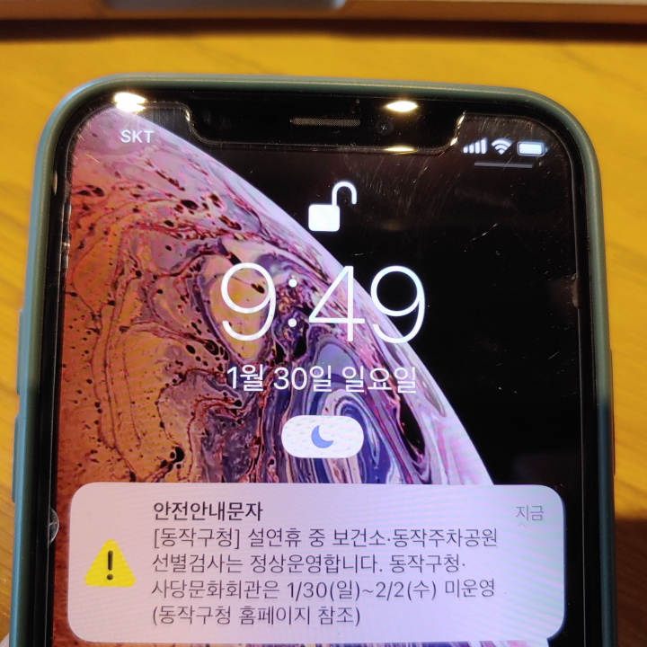 [사진 = 저 같은 경우 1월 30일 오전 동작구청으로부터 이러한 안전안내문자 받았습니다. 설연휴 코로나 검사 동작구 선별진료소 운영 장소가 어디인지 알 수 있습니다. 보건소 및 동작주차공원 선별검사는 정상운영되나 동작구청 및 사당문화회관은 1월 30일 일요일부터 2월 2일 수요일까지 운영되지 않는다고 합니다. 동작구 코로나 검사 받으실 예정인 분들은 참고하시기 바랍니다. (C) 나이스블루]