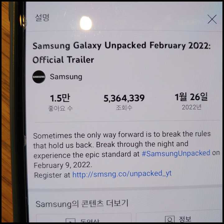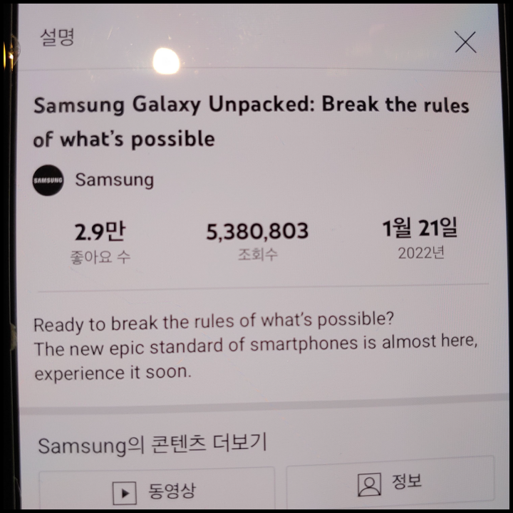 [사진 = 삼성전자 공식 유튜브에 올라온 갤럭시 언팩 영상이 수많은 좋아요 횟수와 더불어 500만 뷰 이상의 조회 수를 나타냈습니다. 이러한 반응 통해서 갤럭시S22 출시일 기다리는 사람들이 국내외에 많이 있음을 알 수 있습니다. 삼성전자의 주력 스마트폰이라는 점에서 해외에서도 관심이 클 것입니다. (C) 삼성 공식 유튜브]