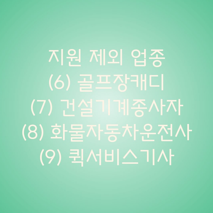특고 프리랜서 5차 재난지원금 지원 제외 직종 이렇습니다. 택배기사, 가전제품설치기사, 신용카드회원모집인, 건설기계종사자 분야 등에서 활동하는 분들은 받을 수 없다고 합니다. 정부에서 코로나19 이전 수준으로 소득수준 및 고용상황 등이 회복됐던 일부 직종은 지원 필요성이 크지 않다고 판단했다고 합니다.