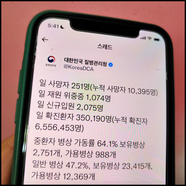 [사진 = 질병관리청 공식 트위터에 따르면 3월 13일 오전 0시 기준으로 하루 확진자 350,190명이며 누적 확진자는 655만 명 넘었습니다. (C) 질병관리청 공식 트위터]