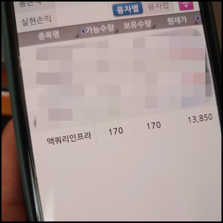 [사진 = 저 같은 경우 맥쿼리인프라 주가 지난 1년 동안 상승하면서 12.27%의 수익을 냈습니다. 보유수량은 170주로 늘렸습니다. 해당 종목 배당금 나왔을 때 보유수량을 더 늘리면서 다음에 배당락일 지날 때 더 많은 배당금을 받으려고 합니다. 저는 다른 국내 주식 종목은 손해를 보는 중인데 맥쿼리인프라 상승으로 그나마 선방하는 중입니다. 사람마다 개인 차이가 있을지 모르겠으나 지금까지만을 놓고 보면 맥쿼리인프라에 투자하길 잘했다고 생각합니다. (C) 키움증권 영웅문S 앱]