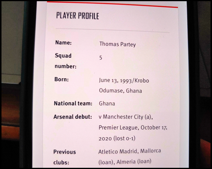 [사진 = 중앙 미드필더 토마스 파티는 2020년부터 아스널에서 활약했으며 그 이전에는 2013년부터 2020년까지 스페인 명문 클럽인 아틀레티코 마드리드에서 활약했다. 가나 국가대표 명단 포함된 선수 중에서는 소속팀 네임벨류가 가장 두드러진다. (C) 아스널 공식 홈페이지(arsenal.com)]