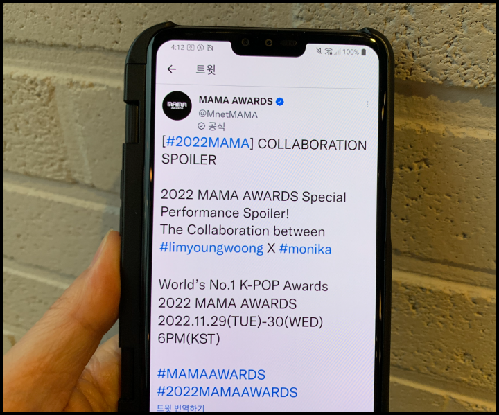 MAMA 2022 라인업 임영웅 김연아 각각 아티스트와 시상자 명단에 이름을 올리면서 한국과 일본 양국에서 커다란 관심을 모을 예정입니다. 이미 K-POP 팬들이 알고 계신 것처럼 이번 MAMA가 3년 만에 일본에서 개최됩니다. 3년 전 나고야돔에서 개최했다면 이번에는 오사카에 있는 교세라돔입니다. 개인적인 추측이지만, 어쩌면 MAMA 도쿄돔 추후 개최를 위한 밑그림이 아닌가 싶은 생각을 해봅니다. 어쨌거나 MAMA 2022 라인업 포함된 아티스트들이 어제와 오늘에 걸쳐 일본으로 출국했습니다. 특히 이번 시상식에서는 컬래버 무대가 여럿 성사되면서 눈길을 끕니다. 자우림, 타이거JK 같은 베테랑 가수와 더불어 유명 댄서 모니카 x 임영웅 컬래버 확정됐습니다.