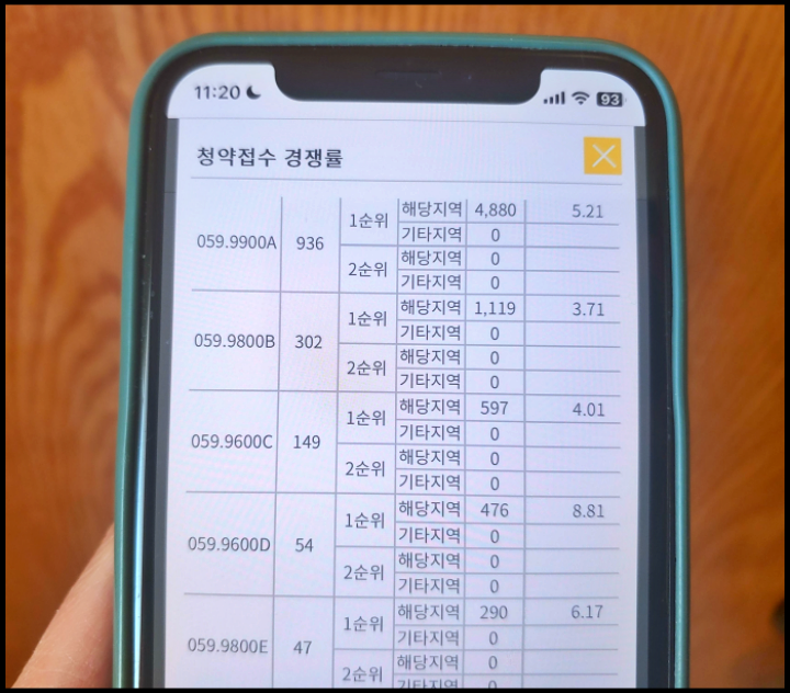 59타입 : A(5.21대 1) B(3.71대 1) C(4.01대 1) D(8.81대 1) E(6.17대 1)
