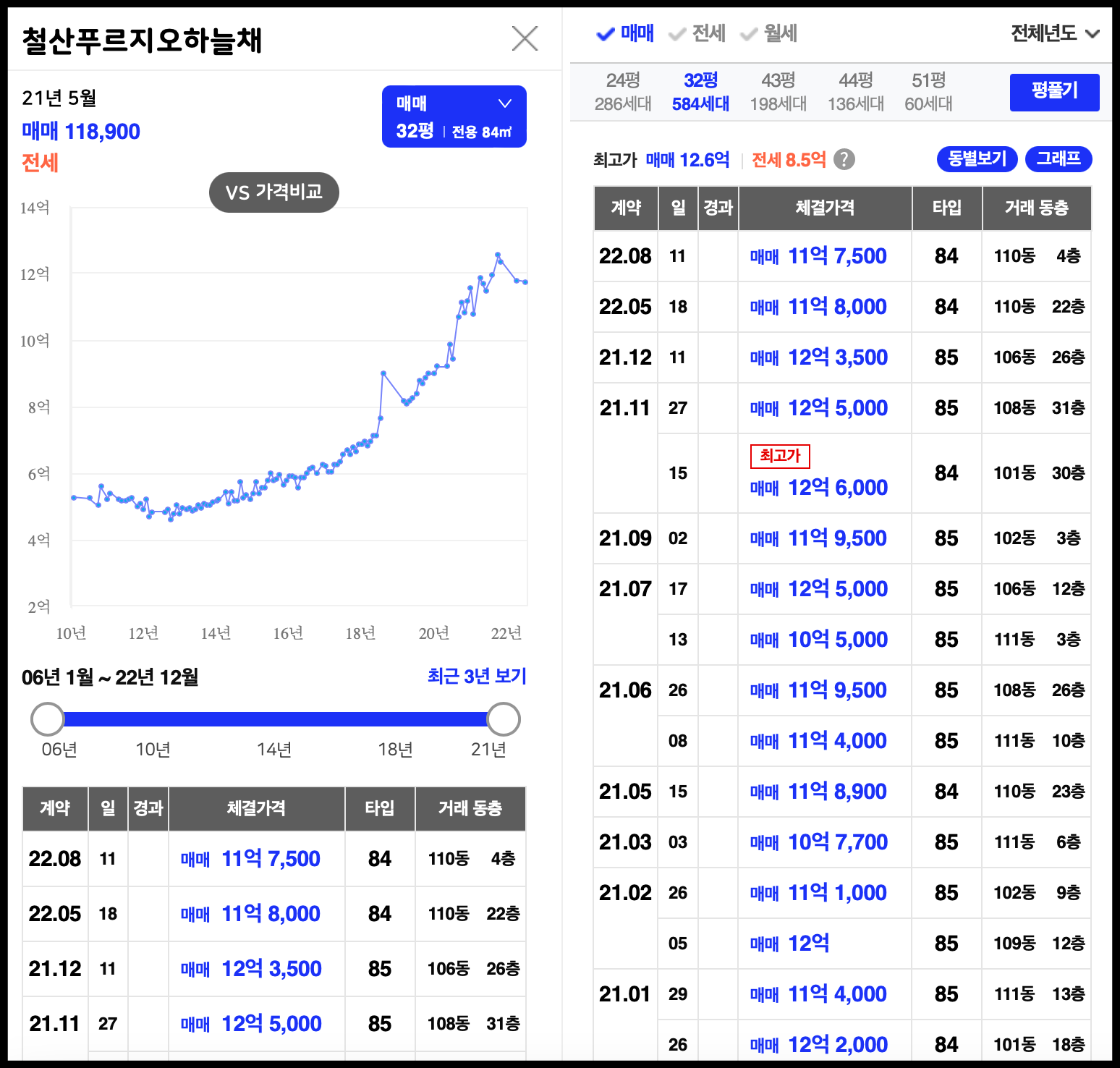 114C 타입 83세대 : 11억 9,800만 원