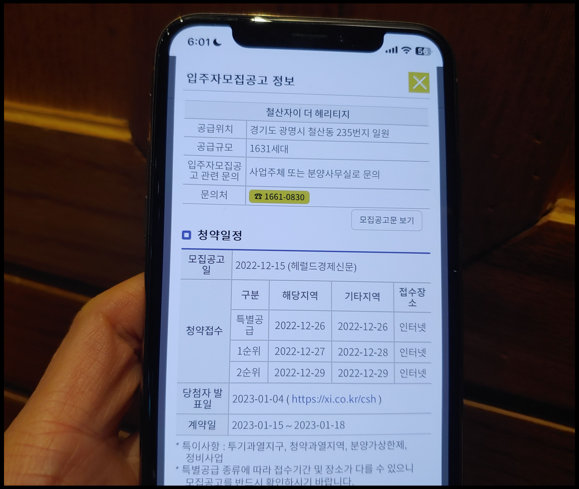 [사진 = 청약Home에 올라온 입주자모집공고를 보면 철산자이 더 헤리티지 공급규모 1,631세대라고 합니다. 실제로는 총 3,804세대의 대단지 아파트입니다. 12월 26일 특별공급, 12월 27일 1순위(해당지역), 12월 28일 1순위(기타지역), 12월 29일 2순위(해당 및 기타지역) 청약접수 가능합니다. 당첨자는 내년 1월 4일 발표되며 계약일은 2023년 1월 15일부터 1월 18일까지입니다. (C) 청약Home 앱]