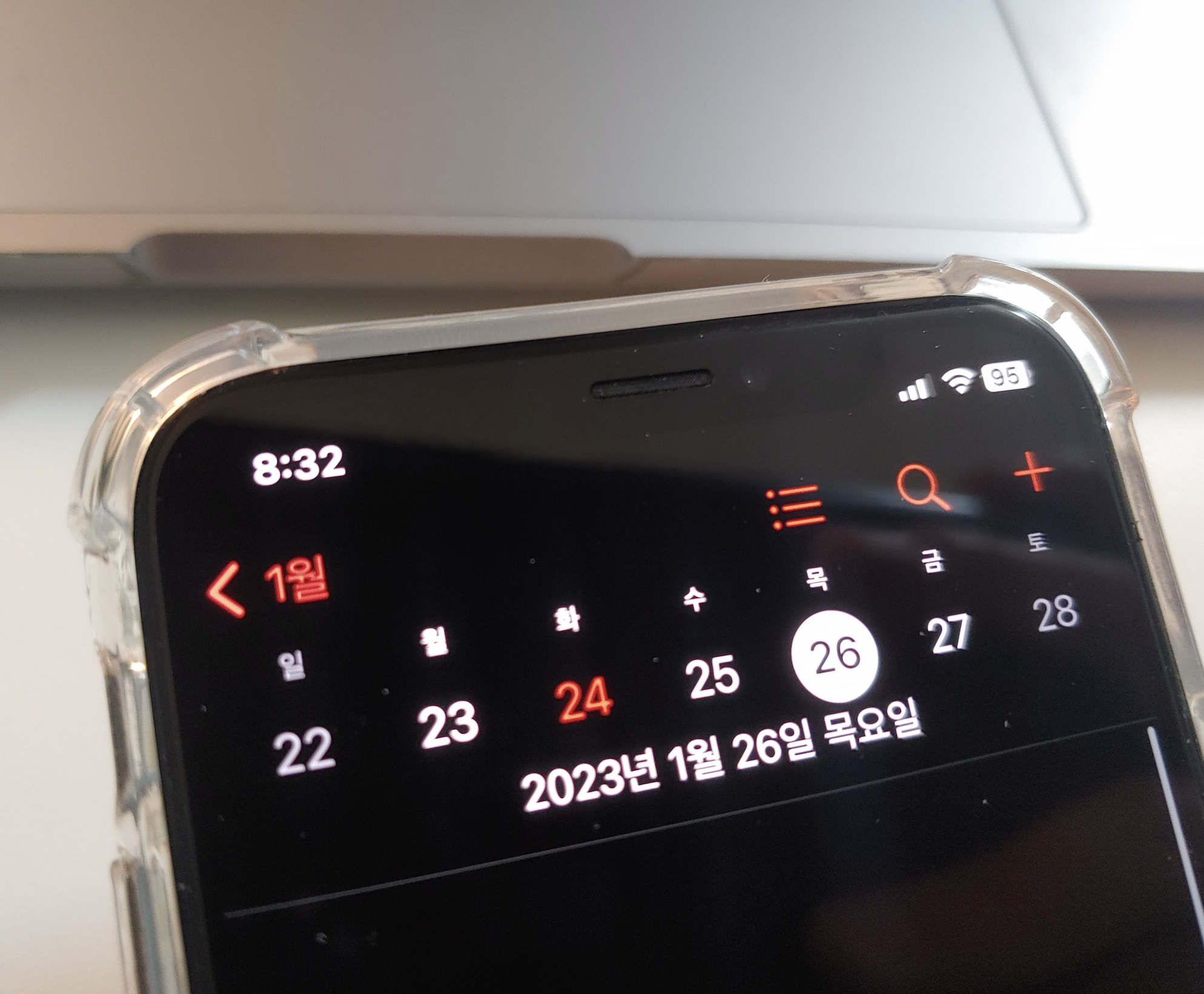 [사진 = 스튜디오미르 공모주 청약기간 미래에셋증권 통해서 1월 26일 ~ 1월 27일 이틀 동안 진행됩니다. 해당 증권사 계좌 있어야만 신청 가능합니다. 청약 가능 시간은 10~16시입니다. 사진은 저의 스마트폰 달력이며 해당 일을 가리킵니다. (C) 나이스블루]