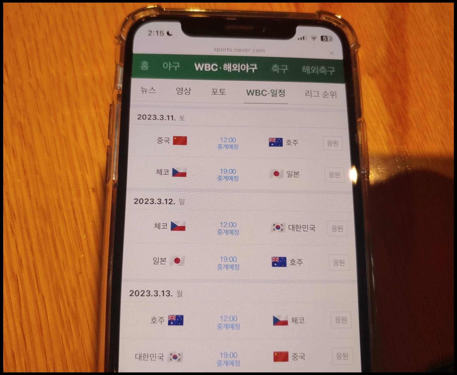 [사진 = 2023 WBC 본선 1라운드 B조 일정입니다. 모든 경기가 일본 도쿄돔에서 펼쳐집니다. 한국은 B조에서 호주(9일) 일본(10일) 체코(12일) 중국(13일)과 격돌합니다. 특히 호주전과 일본전에서 승리하는 것이 중요합니다. 다섯 팀 중에 두 팀이 2라운드에 진출하며 만약 한국이 A조 1위로 마치면 2라운드에서는 B조 2위, A조 2위로 1라운드 일정 끝내면 2라운드에서는 B조 1위와 격돌합니다. (C) 네이버 앱]
