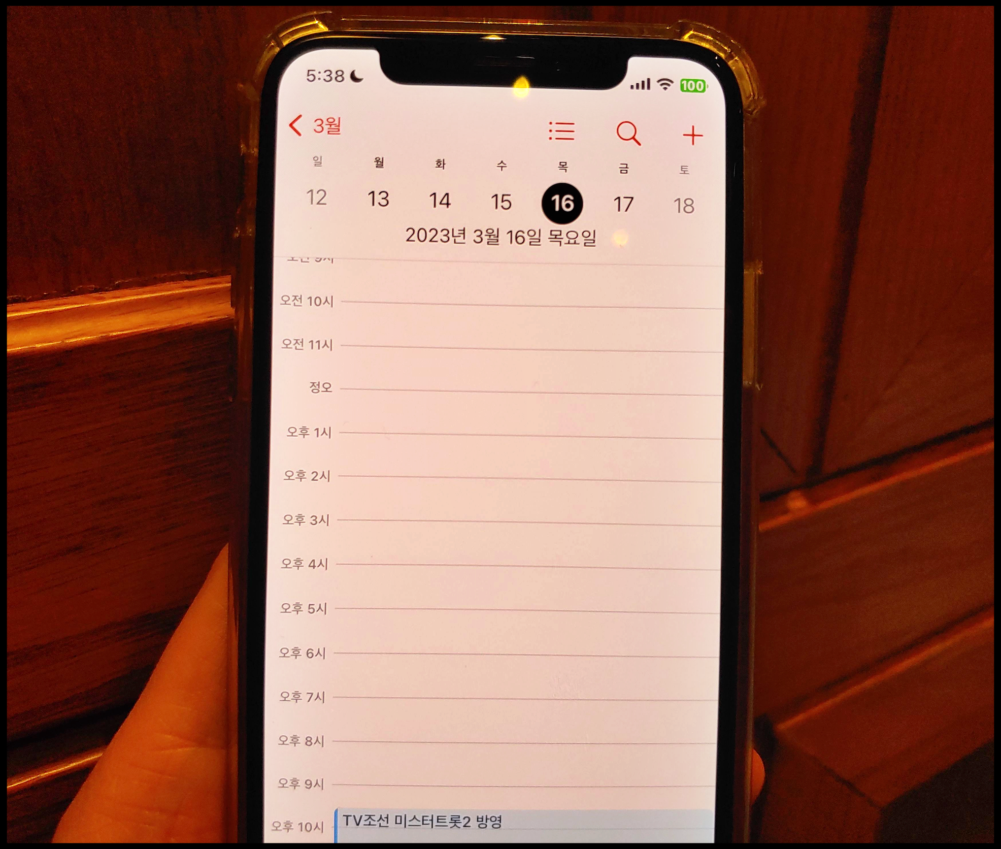 [사진 = 미스터트롯2 결승전 평소보다 일찍 방영됩니다. 3월 16일 오후 9시 30분부터 시작합니다. 사진은 저의 스마트폰 달력이며 해당 일을 가리킵니다. (C) 나이스블루]