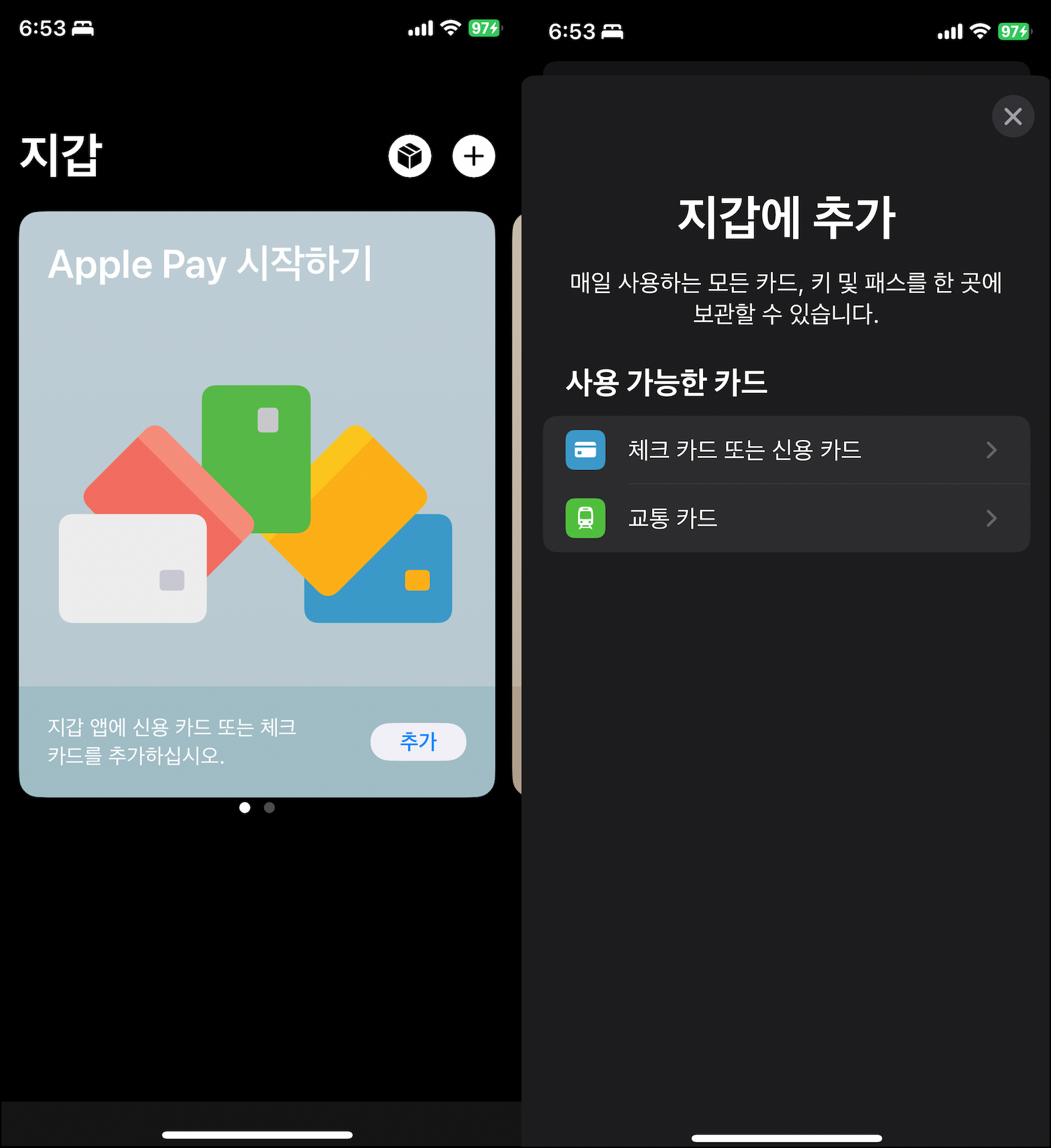현대카드 앱 메뉴쪽을 보니 Apple Pay 카드 추가 항목이 있습니다. 그 부분으로 들어가시면 됩니다.