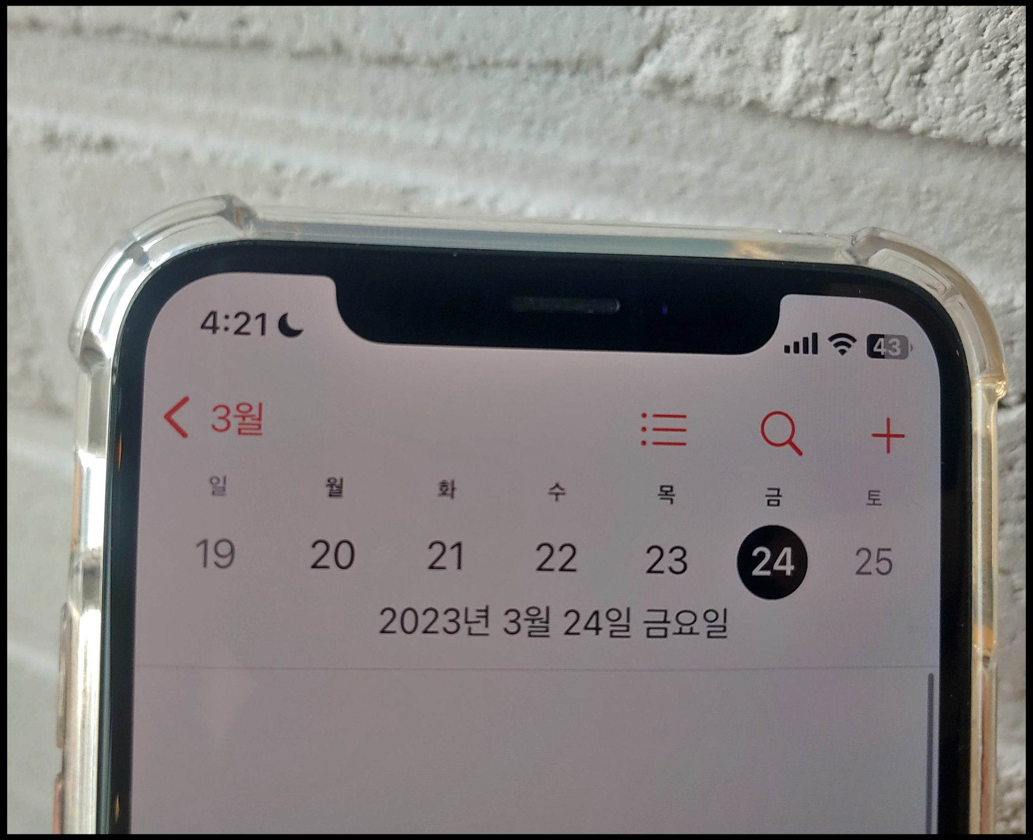 [사진 = 휘경자이 디센시아 입주자 모집공고일 2023년 3월 24일 입니다. 해당일을 기준으로 이 아파트 단지의 서울 이외의 거주 여부에 대해서는 수도권 거주하는 성년 분도 청약 가능하나 청약 신청자 중에 같은 순위 내에 경쟁이 있다면 서울 거주자 우선이라고 합니다. 사진은 저의 스마트폰 달력이며 해당일을 가리킵니다. (C) 나이스블루]