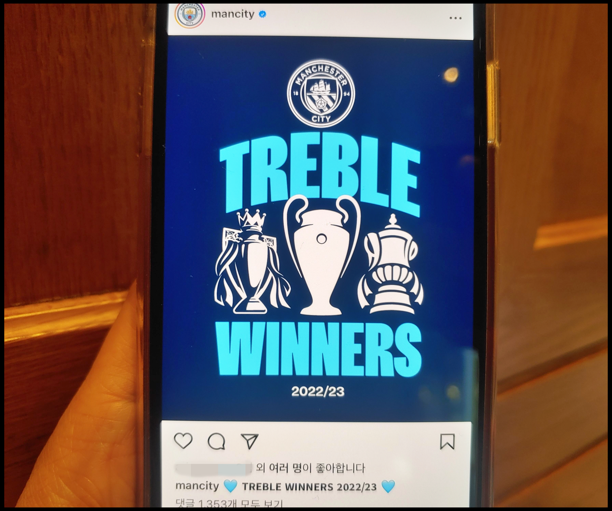 [사진 = 맨시티(맨체스터 시티)는 2022/23시즌 트레블 달성 팀이다. 잉글리시 프리미어리그 및 FA컵에 이어 구단 사상 첫 챔피언스리그 우승을 달성하며 유럽을 제패하는 대업을 달성했다. 프리미어리그 팀으로는 1998/99시즌의 맨체스터 유나이티드(맨유) 이후 두 번째다. 아울러 과르디올라 감독은 FC 바르셀로나 사령탑을 맡았던 2008/09시즌에 이어 두 번째 트레블을 이루어냈다. 유럽 축구 역사에서 두 번의 트레블을 이루어낸 감독은 과르디올라 감독이 최초다. (C) 맨시티 공식 인스타그램]