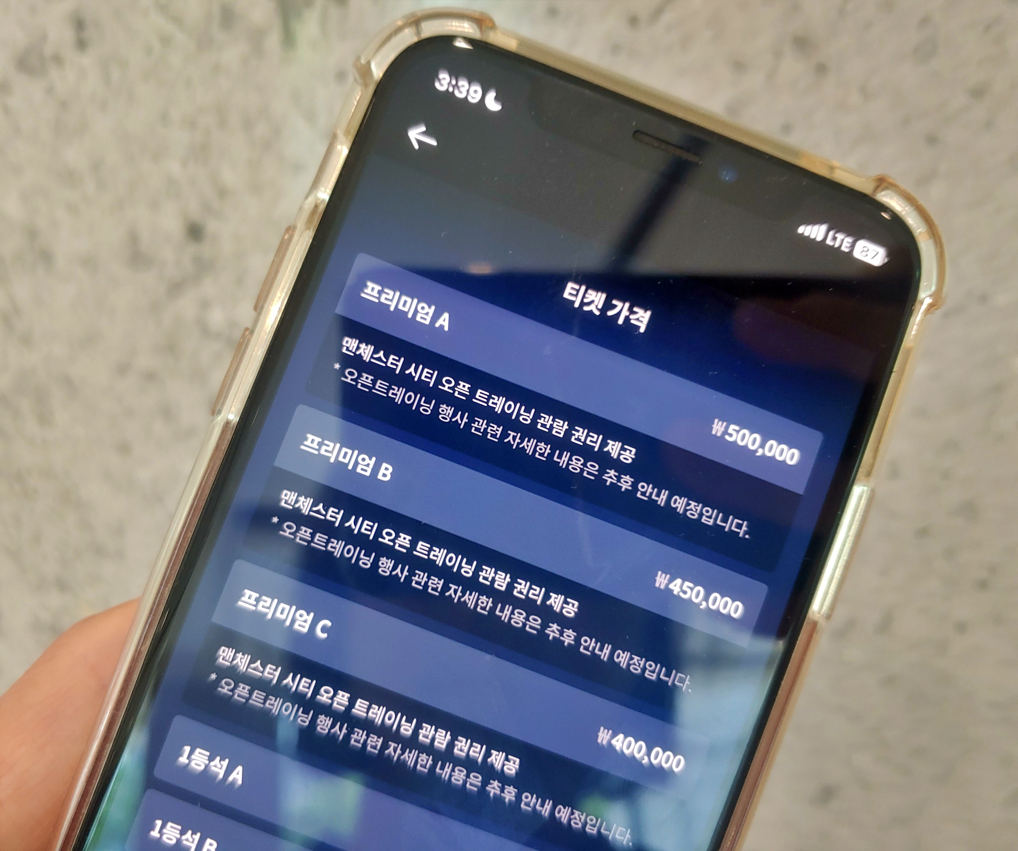 [사진 = 맨시티 내한 티켓팅 예매 가격 및 좌석 공개됐다. 휠체어석 3만 원을 제외하고 최저 금액은 4만 원(3등석B)이며 최고 금액은 50만 원(프리미엄A)이다. 프리미엄A 50만 원, 프리미엄B 45만 원, 프리미엄C 40만 원, 1등석A 32만 원, 1등석B 28만 원, 1등석C 24만 원, 2등석A 18만 원, 2등석B 14만 원, 2등석C 12만 원, 3등석A 7만 원, 3등석B 4만 원으로 책정됐다. 만약 티켓을 장만할 경우 티켓값과 별도로 1장 당 예매수수료 1,000원 부과된다. 예매는 쿠팡플레이 계정 1개당 4매까지다. (C) 쿠팡플레이 앱]