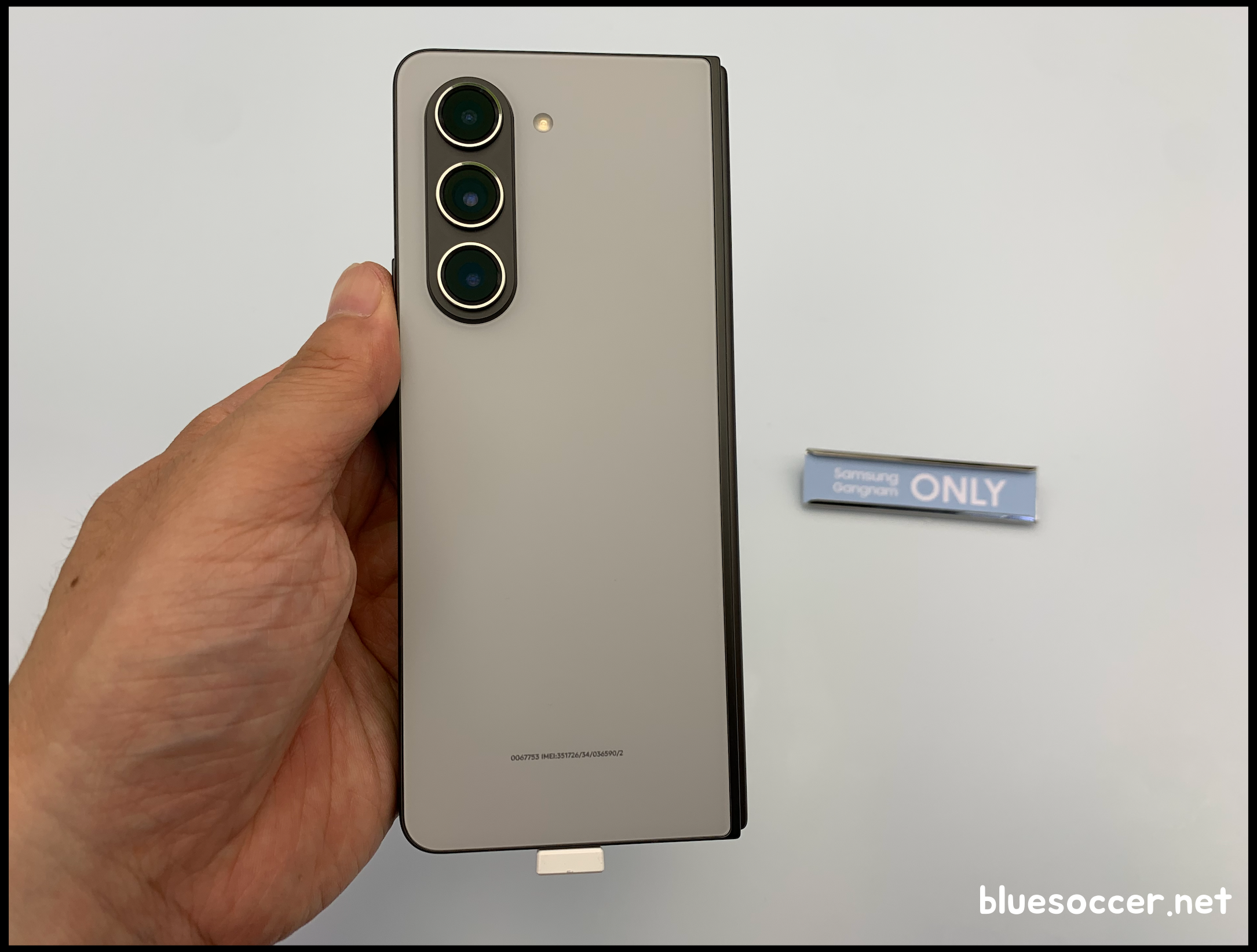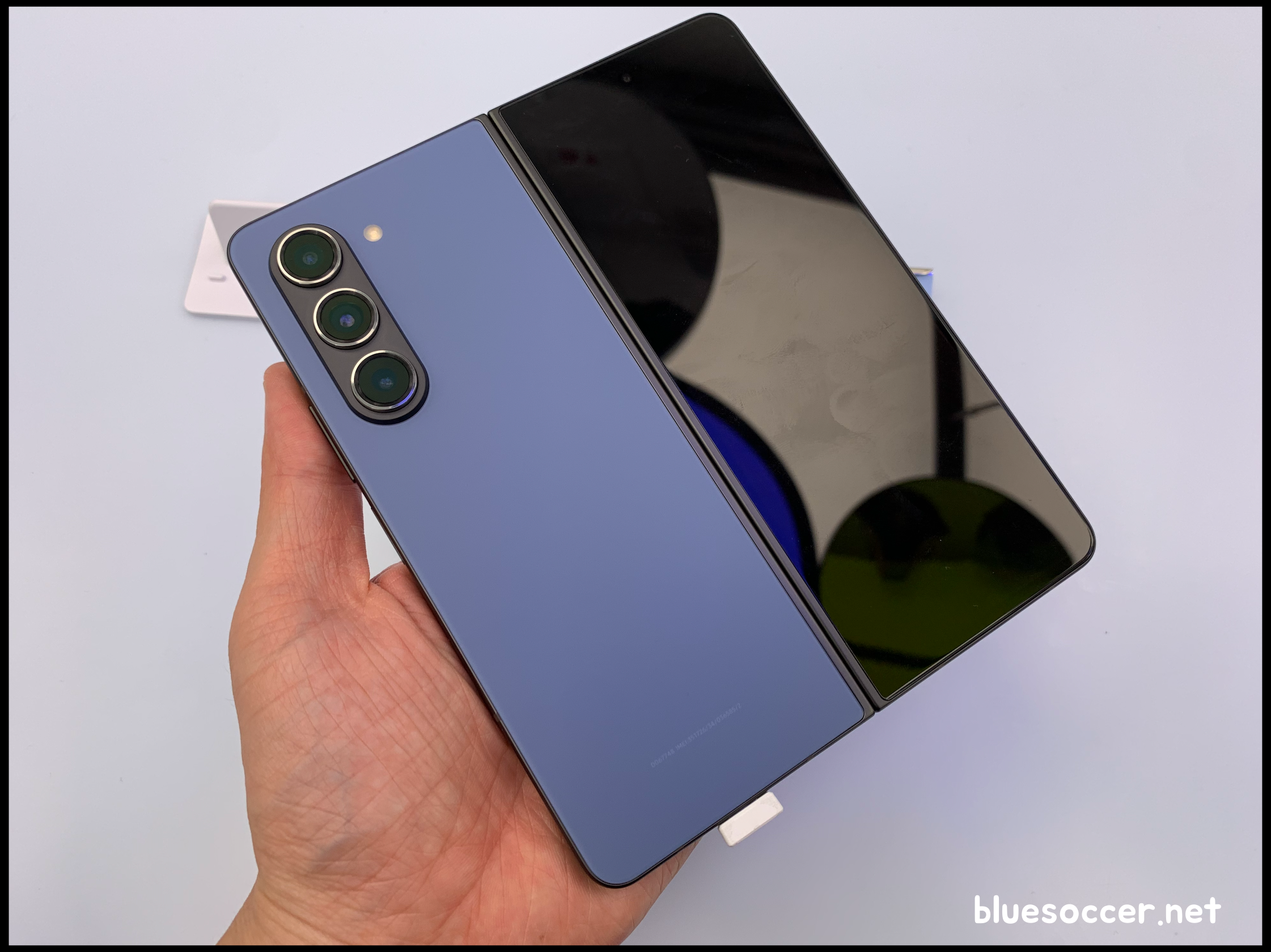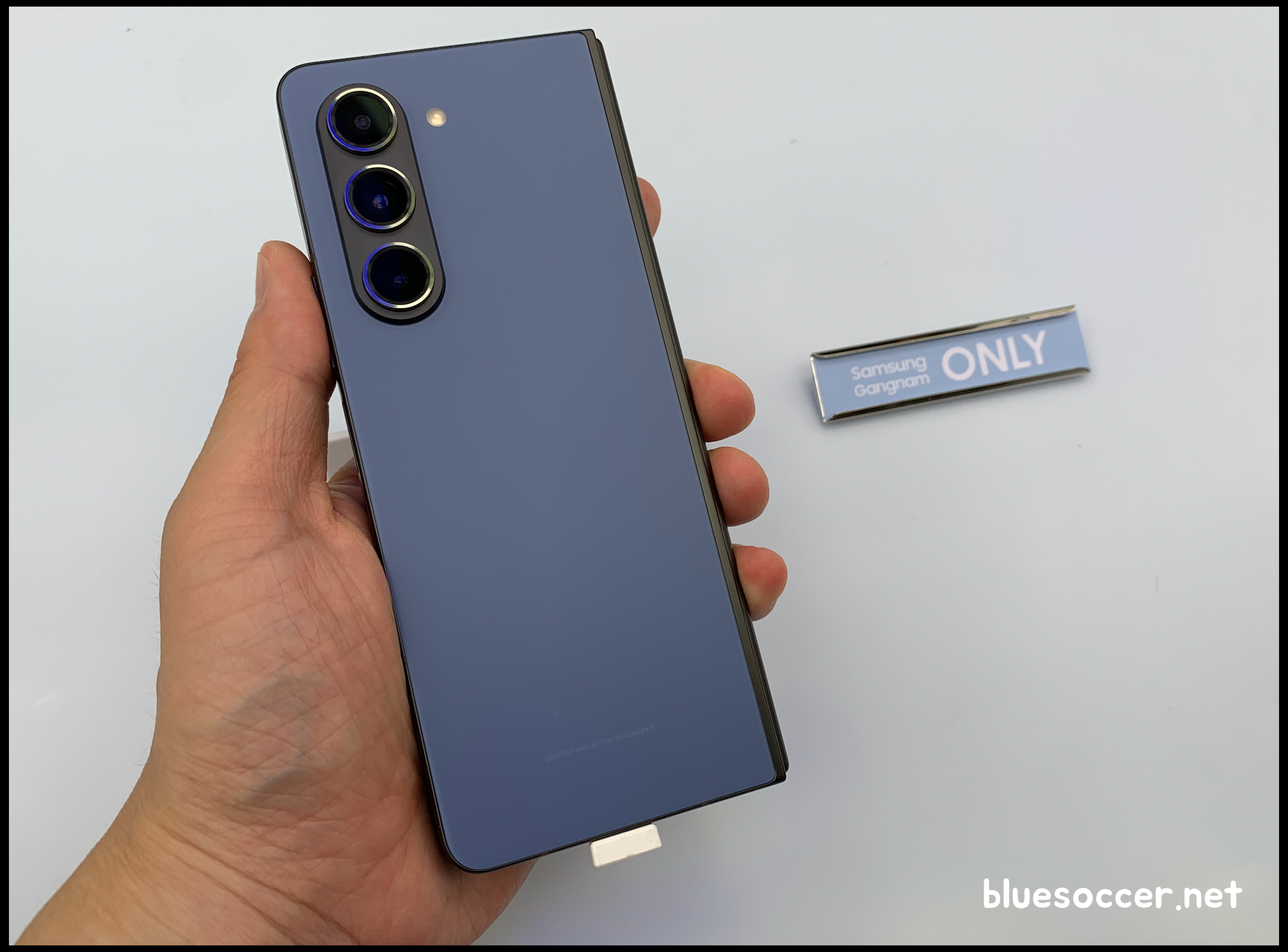 갤럭시 Z폴드5 블루 모습입니다. 해당 모델도 삼성닷컴 및 삼성 강남에서만 선보입니다. 기본 색상인 아이스 블루에 비해서 톤이 더 짙습니다. 짙은 블루를 나타냅니다. 그러고 보니 삼성닷컴과 삼성 강남 갤럭시 Z폴드5 색상 전용 모델 두 가지가 완전히 밝은 톤은 아닙니다. 기본 3가지 색상과 전혀 다른 느낌의 색상을 선보이기 위해 이러한 모델이 나오지 않았나 싶은 생각입니다.