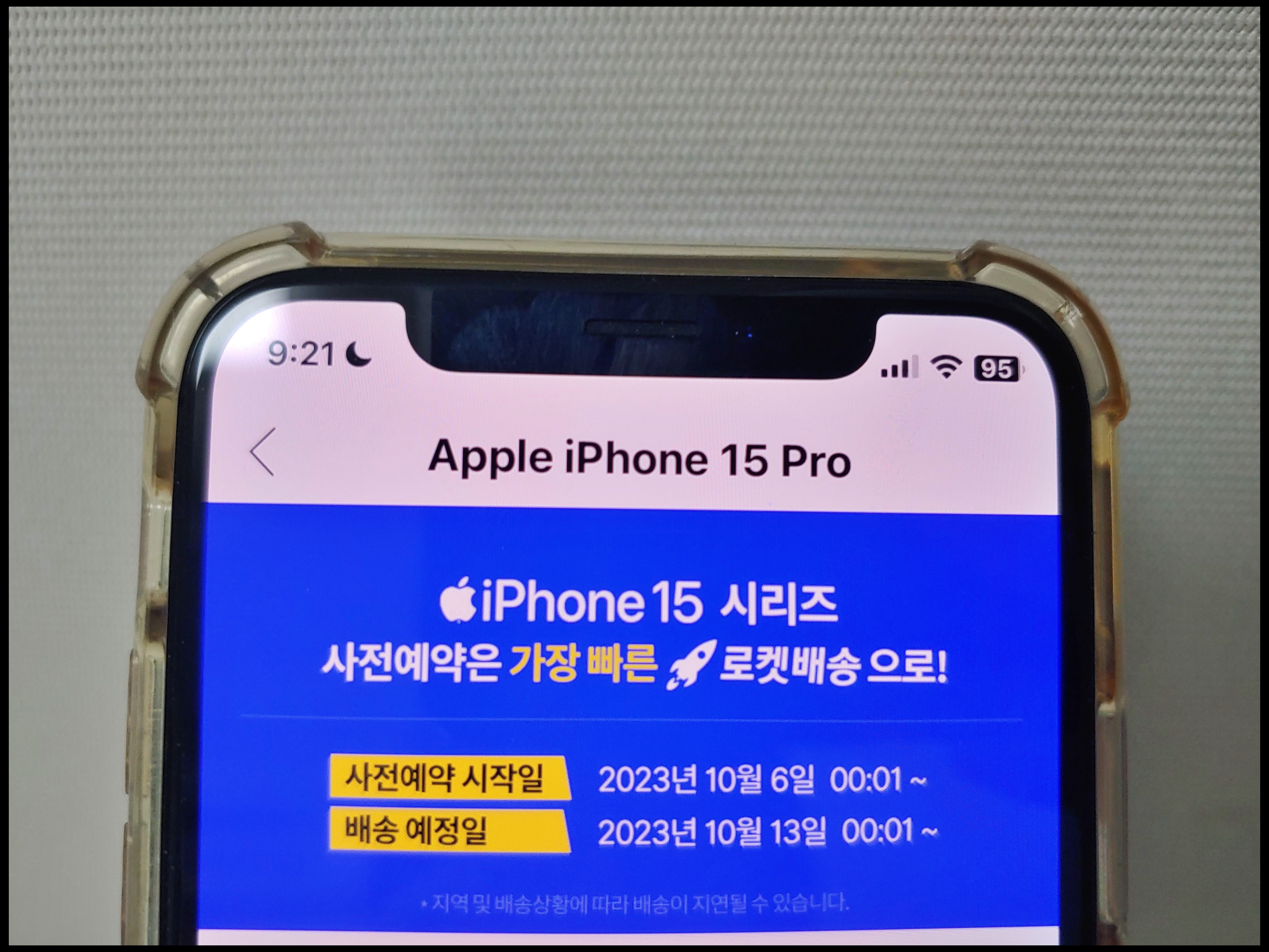 [사진 = 아이폰15 사전예약 쿠팡 시간 이렇습니다. 만약 해당 단말기 장만 예정이신 분이라면 반드시 참고하시기 바랍니다. 10월 6일 금요일 오전 0시 1분입니다. 그동안 0시가 되자마자 시작되었는데 이번에 바뀌었습니다. 0시 0분에서 1분 더 경과해야 시작됩니다. 아마도 이 때 쿠팡 접속 원활하지 않을 가능성도 없지 않아 보입니다. 너무 많은 사람들이 접속할 가능성 높기 때문입니다. 특히 아이폰15 프로 사전예약 노리는 사람이 가장 많을 겁니다. 아울러 쿠팡 아이폰15 배송 예정일 2023년 10월 13일 오전 0시 1분 이후부터라고 합니다. (C) 쿠팡 앱]