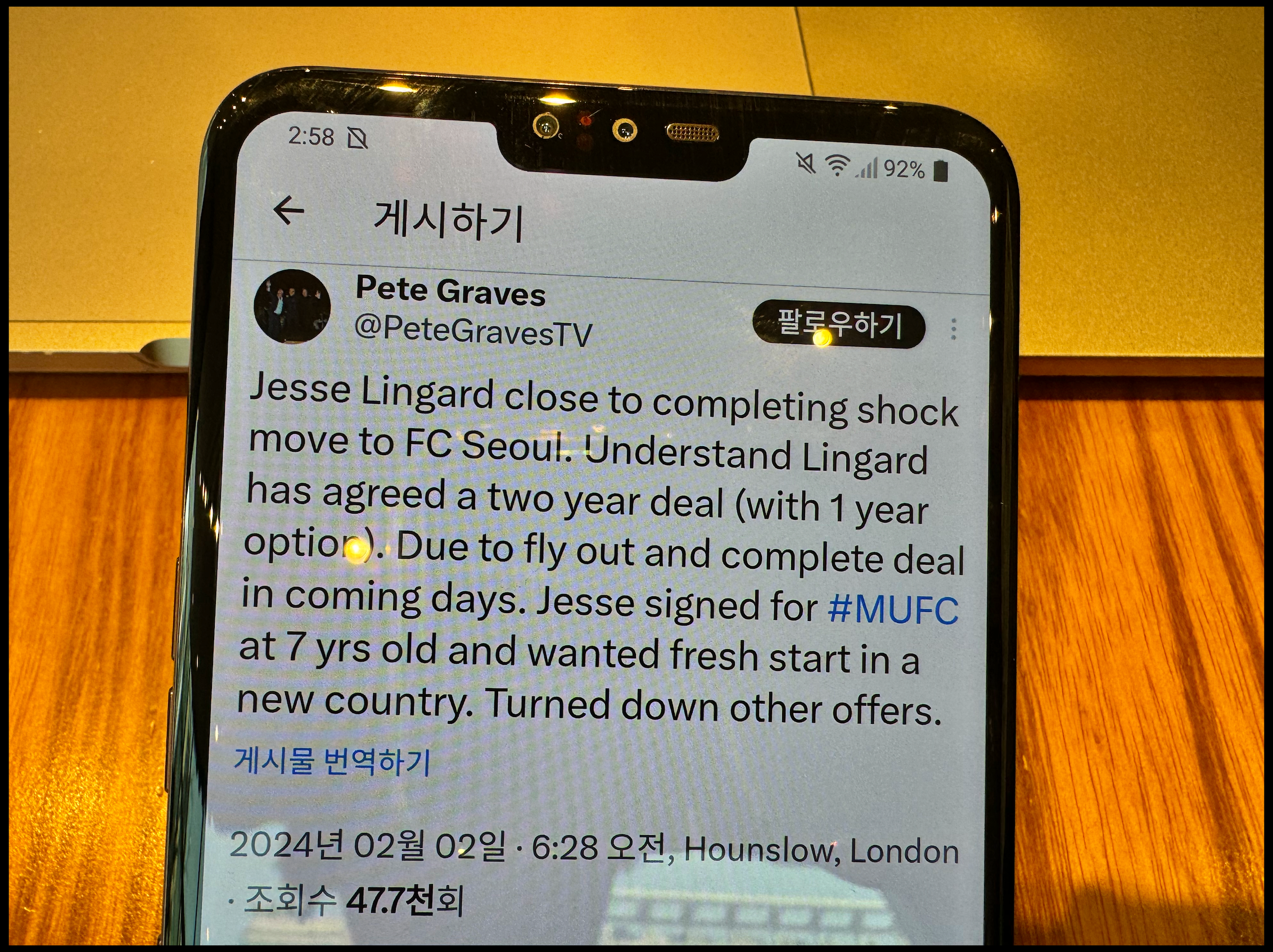 [사진 = 페테 그레이브스(Pete Graves)라는 스카이스포츠 아침시간 진행자는 린가드가 FC서울로 충격적인 이적을 한다고 밝혔다. 2+1년 계약에 동의했으며 며칠 안으로 비행기를 타고 계약 완료한다고 밝혔다. 그는 7세에 맨유 입단했으며, 이제는 새로운 나라에서 새로운 시작을 원하며, 다른 제안을 거절했다고 밝혔다. 만약 이 트윗이 맞다면 린가드는 자신의 FC서울 이적을 위해 다른 팀의 이적 제안을 거절했다는 뜻이다. (C) Pete Graves Twitter]