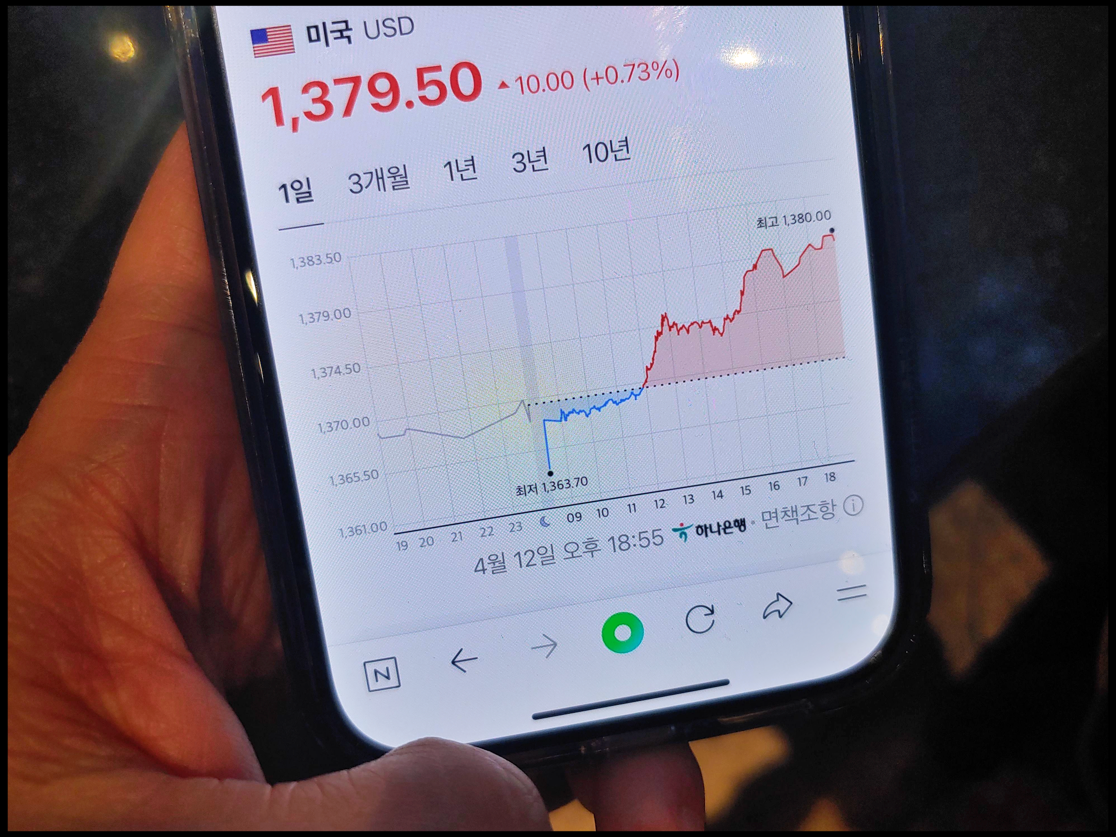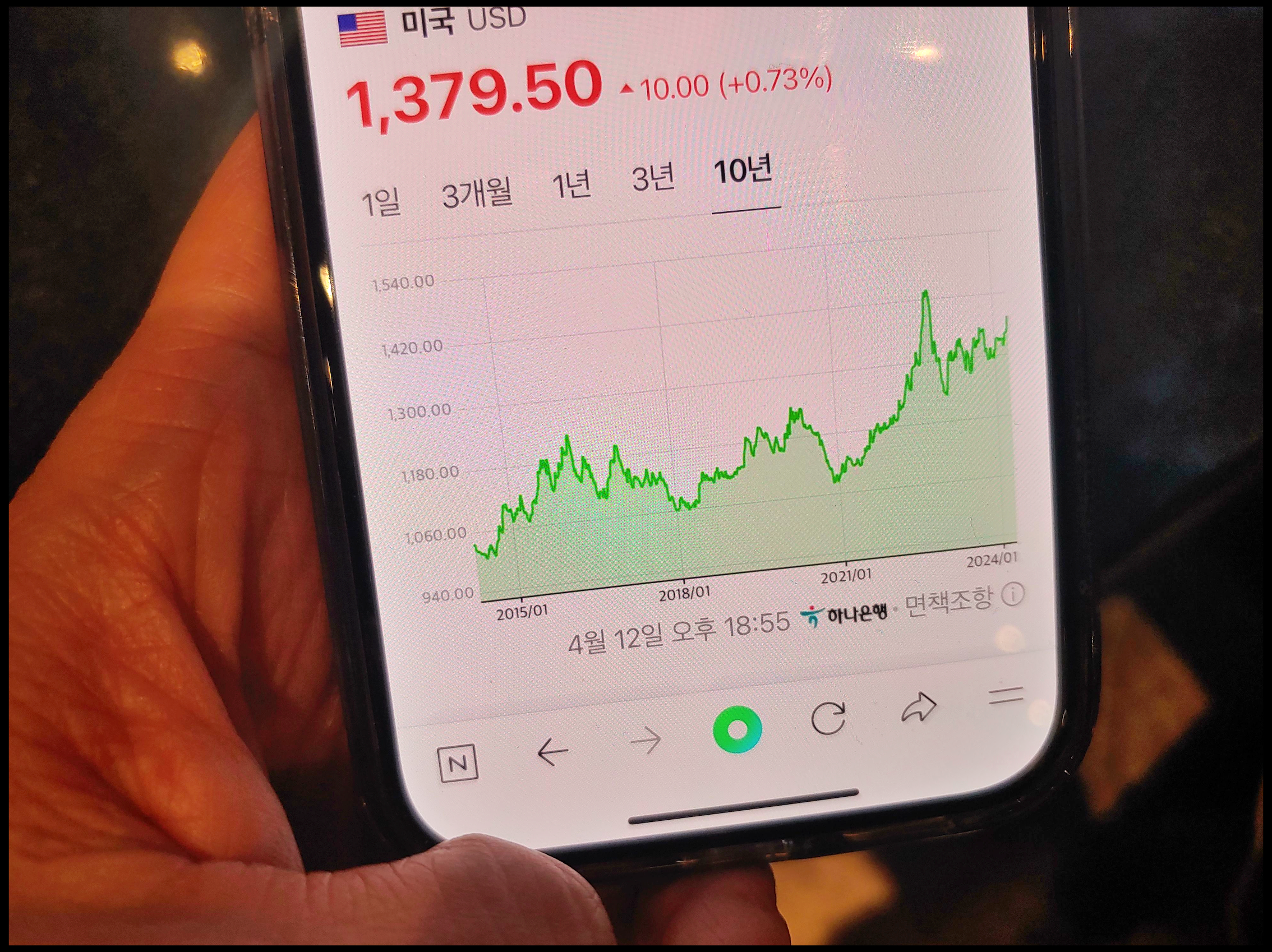 [사진 = 금투세 폐지 여부 이슈로 해외주식에 눈을 돌리는 분들이 있을지 모릅니다. 그런데 지금 시점에서는 해외주식 진입장벽이 존재합니다. 달러 환율이 높습니다. 4월 12일 기준으로 1달러 당 1,379.50원입니다. 최근 1년 중에서 가장 높습니다. 금투세 폐지 안될 경우 2025년이 되는데 그때는 강달러일지 약달러일지 모르겠습니다. 오는 11월 초 미국 대선이 있기 때문입니다. 만약 공화당 도널드 트럼프 전 대통령이 다시 당선될 경우 2010년대 후반처럼 약달러 가능성이 존재하며, 그럴 경우 미국주식을 하는 한국인들의 진입장벽이 낮아질 수도 있습니다. 실제로 트럼프 집권 시기를 보면 지금의 바이든 대통령 체제에 비해 달러 약세가 두드러집니다. (C) 네이버 앱]