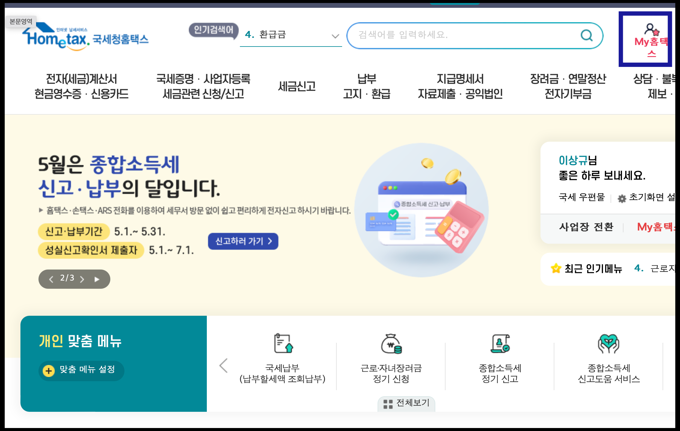 종합소득세 신고방법, 환급금 조회 및 기타소득 적용