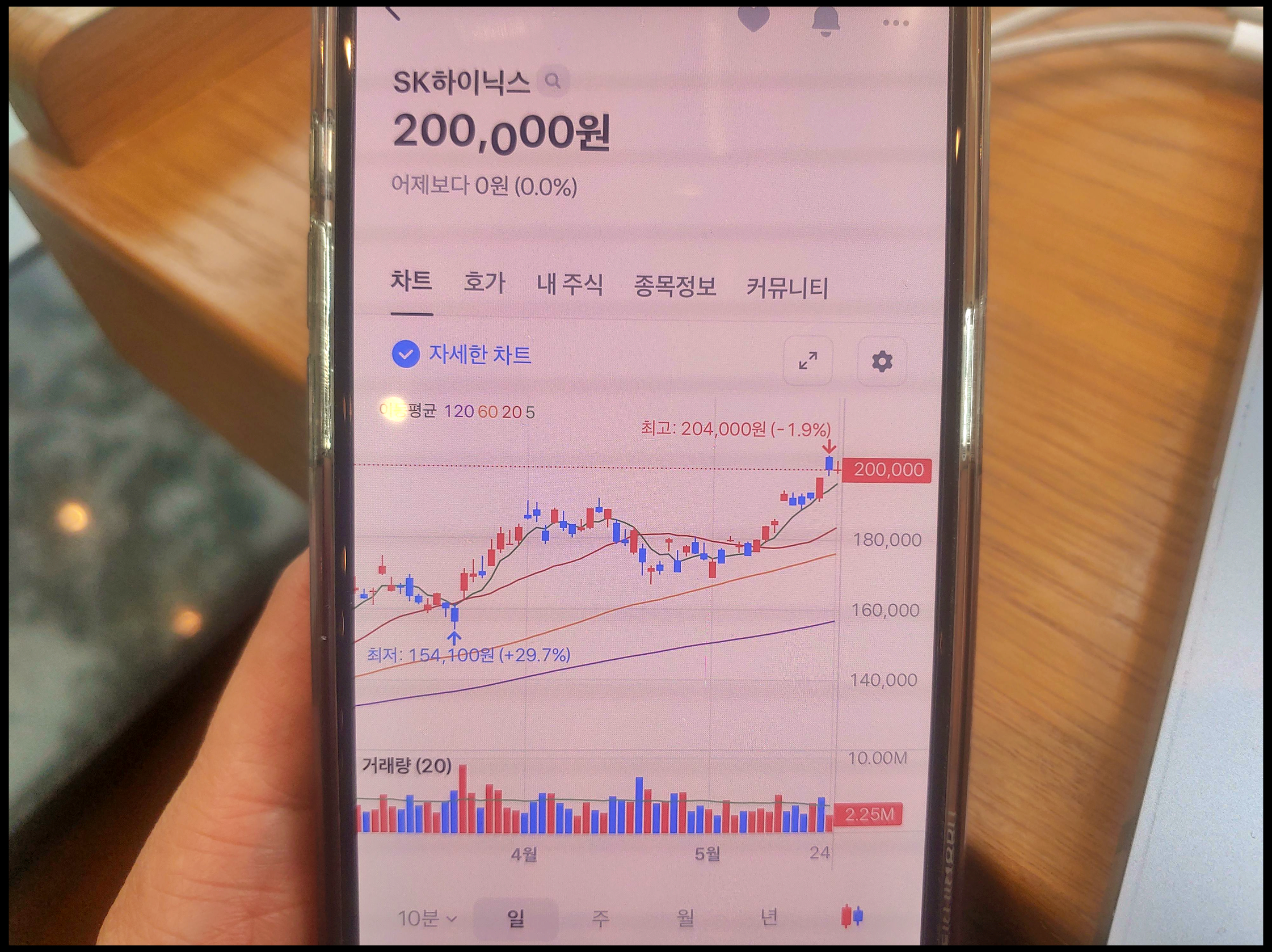-3년 만에 액면분할 확정, 한국 국장에서는 SK하이닉스 주가 20만 원 돌파(5월 23일, 204,000원)