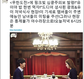 무한도전 광희 썸네일형 리스트형 무한도전 광희, 이미지 개선 절실히 필요하다 무한도전 광희 식스맨 합류는 개인적으로 좋게 판단했습니다. 광희 긍정적으로 바라봤던 이유에 대해서는 그동안 다수의 예능 프로그램에 출연했던 경험, 무한도전 고정멤버가 되고 싶어했던 뚜렷한 의지, 노홍철 공백 메울 수 있다는 기대감이 작용했습니다. 식스맨 프로젝트 시절에는 그렇게 생각했었어요. 그렇다고 '광희가 식스맨이 꼭 되어야 한다'는 뜻은 아니었습니다. 저는 유병재가 광희보다 더 적합했다고 봅니다. 하지만 유병재는 식스맨 최종 후보에 이름을 올리지 못했죠. 이렇다보니 무한도전 광희 고정멤버 투입을 차선책으로 여겼습니다. 그런데 지금까지 광희 무한도전 활약상을 보면 생각보다 매끄럽지 못하네요. [사진 = 무한도전 광희 고정 멤버로 합류할 때의 모습(오른쪽에서 두 번째) (C) 무한도전 공식 트위터(tw.. 더보기 무한도전 광희 유이 로맨스가 필요해 불편한 까닭 마치 무한도전판 우결 보는 것 같았습니다. 6월 27일 MBC 예능 프로그램 무한도전 광희 유이 로맨스가 필요해 시청하면서 '내가 우결 보는 건 아니겠지?'라는 생각이 들었습니다. 우결 끝난 뒤에 무한도전 광희 유이 레스토랑에서 1:1 대화를 나누면서 식사를 하는 방영분이 나왔으니까요. 마치 광희 유이 우결 시청하는 것 같았습니다. 두 사람이 함께 지내는 모습이 재미 없지는 않았습니다. 하지만 '무한도전에서 다루어야 할 콘텐츠인가?'에 대해서는 의구심이 쌓였습니다. [사진 = 무한도전 광희 유이 '로맨스가 필요해' 예고했던 무한도전 공식 트위터 (C) twitter.com/realmudo] 결과적인 관점에서 무한도전 광희 유이 저녁식사 방영분을 비롯하여 6월 27일 프로그램 주제였던 '로맨스가 필요해'는.. 더보기 무한도전 광희 식스맨 확정, 오히려 잘된 이유 무한도전 광희 식스맨 확정 방송 보면서 느꼈던 것은 '최종 후보 4인 중에서 될 사람이 됐다'고 봤습니다. 홍진경, 강균성, 최시원 식스맨 부적합한 것은 많은 사람이 공감하기 때문에 그 부분은 충분히 설명하지 않아도 될 것 같습니다. 그나마 강균성이 괜찮아 보였는데 4월 18일 무한도전 식스맨 방송분 보면서 '강균성이 떨어진다'는 뉘앙스가 드러나더군요.(김숙 멘트, 현수막 떨어진 것이 암시) 그때부터 무한도전 광희 식스맨 확정 예견된 것 같아요. 광희 무한도전 식스맨 멤버가 된 것에 대하여 사람마다 생각이 다를 겁니다. 개인적으로는 광희 군대 미필자라서 식스맨 안될 것 같다는 생각이 들었는데 유병재 탈락 및 장동민 하차라는 변수가 나타나면서 광희가 현실적인 정답이 됐습니다. 무한도전 광희 식스맨 확정은 .. 더보기 이전 1 다음