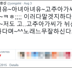 복면가왕 고추아가씨 썸네일형 리스트형 복면가왕 고추아가씨, 장기집권 가능할까? 복면가왕 고추아가씨 정체 과연 누구일지 많은 사람들의 궁금증이 점점 커질 것입니다. 그동안 성우 이용신, 멜로디데이 여은 복면가왕 유력한 인물로 거론되었으나 아닌 것으로 확인됐습니다. 이용신은 자신의 트위터를 통해 고추아가씨가 아니라고 밝혔으나 여은은 소속사 측이 출연하지 않았다고 밝혔습니다. 10대 복면가왕 선발전 최대 관심사는 복면가왕 고추아가씨 과연 누구일까 여부입니다. 그뿐만이 아닙니다. 복면가왕 고추아가씨 장기집권 기틀 마련될지 주목됩니다. [캡쳐 = 성우 이용신은 자신의 트위터를 통해 복면가왕 고추아가씨가 아니라고 밝혔습니다. (C) 성우 이용신 트위터(twitter.com/yongsini)] 그동안 복면가왕 고추아가씨 추정 인물로 여겨졌던 인물은 여럿 있었습니다. 그중에서 가장 유력했던 인물.. 더보기 복면가왕 고추아가씨, 이용신 맞다면 역대급 복면가왕 고추아가씨 9대 복면가왕 됐습니다. 8대 복면가왕 퉁키 이정 한 표 차이로 꺾고 50표 vs 49표로 이기는 저력을 발휘했습니다. 복면가왕 고추아가씨 이용신 만약 맞다면 이정 이긴 것보다 더욱 큰 이변일 수도 있습니다. 이용신 본업은 성우입니다. 앨범을 냈던 경력이 있기 때문에 성우 겸 가수로 봐도 됩니다만 지금까지 대중들에게 많이 알려졌던 인물은 아니었습니다. 이제는 복면가왕으로 달라졌습니다. 이용신이라는 이름이 전국적으로 잘 알려졌죠. *참고로 이 글은 복면가왕 고추아가씨 이용신 맞다는 전제하에 작성했습니다. 현재까지 복면가왕 고추아가씨 유력 인물은 이용신이며, 성우 출신 방송인 서유리가 1라운드에서 지목을 했던 전례가 있습니다. 다만, 복면가왕 고추아가씨 정체는 드러나지 않았으며 누구인지 .. 더보기 이전 1 다음